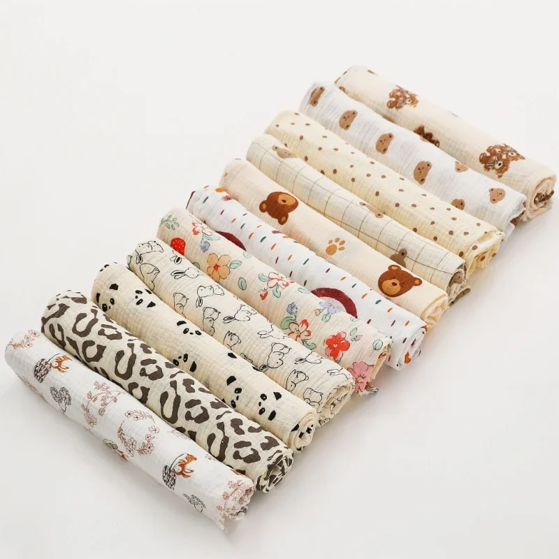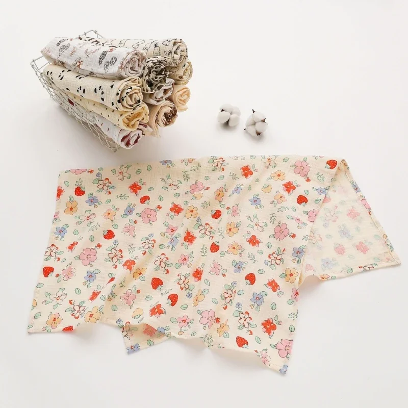 Baby Cotton Muslin Swaddle Blanket Floral/Animal Print Stroller Blanket Infant Diaper Newborn Receiving Blanket