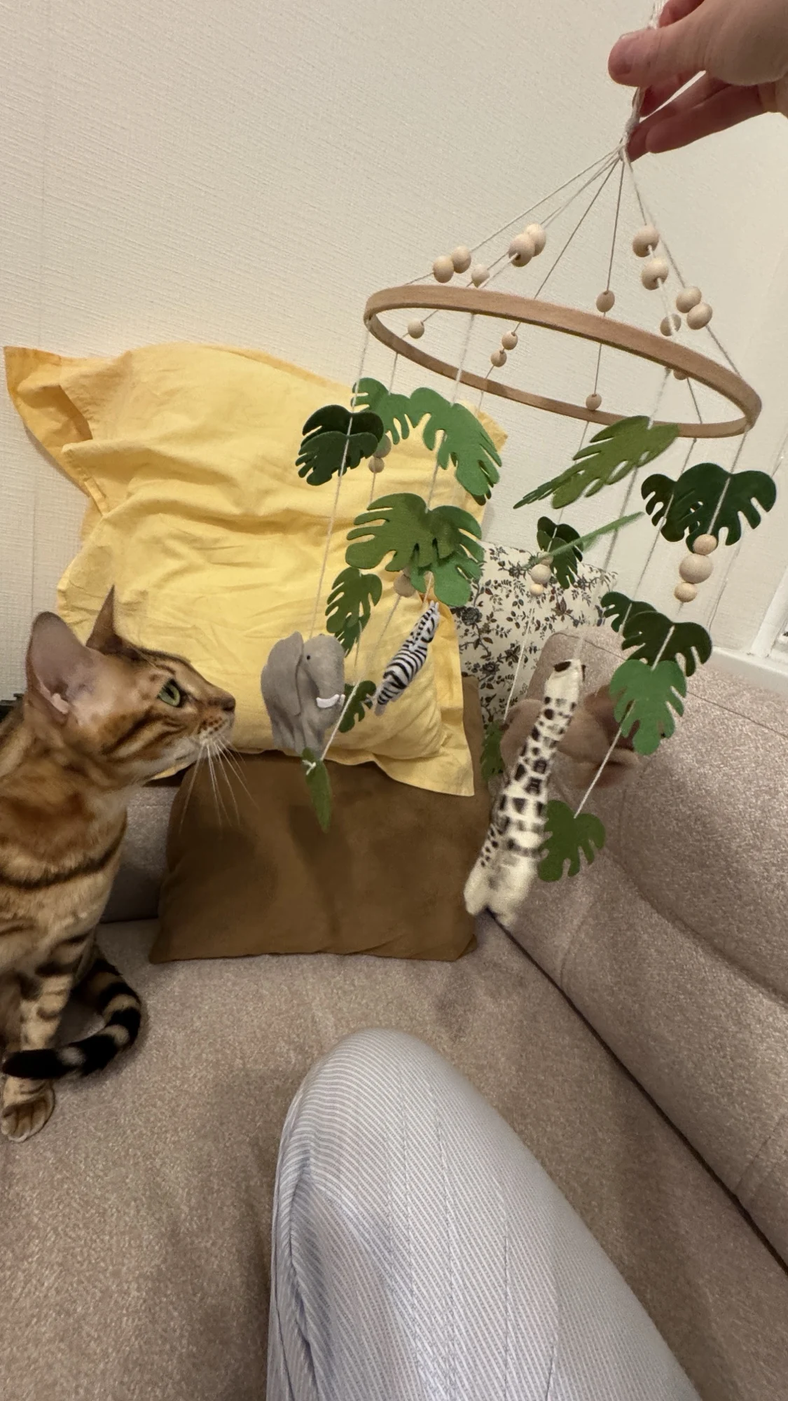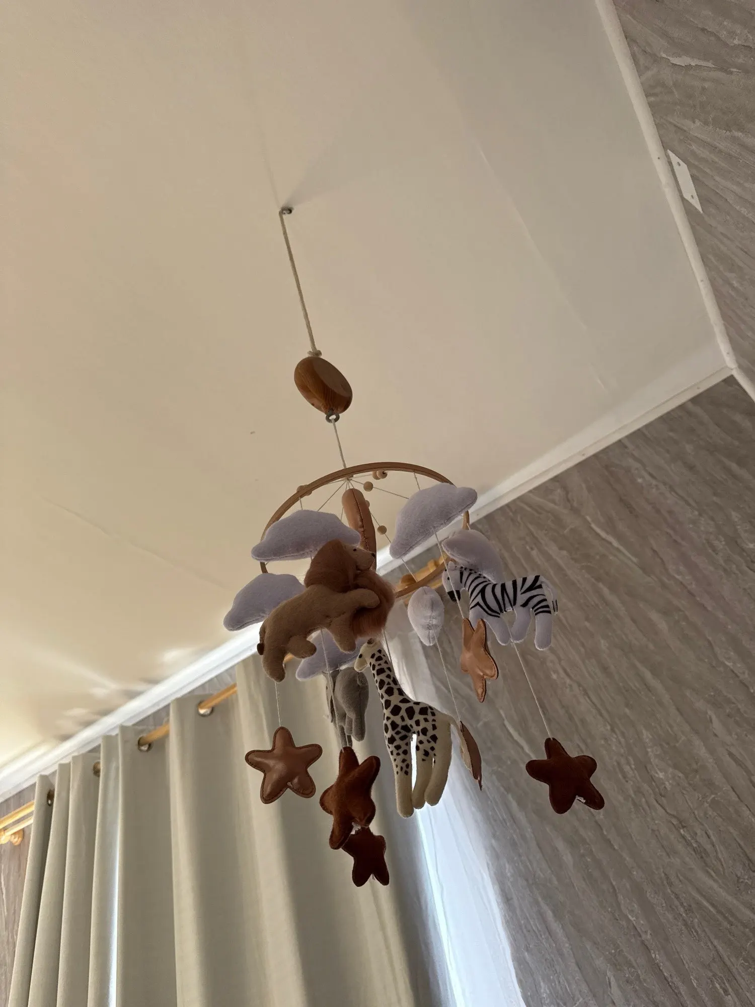 This mobile is really beautiful. It’s one of the best purchases I’ve made on this site. I bought an additional rattle and it makes the mobile spin. You can see the mobile plus the rattle in the photo.