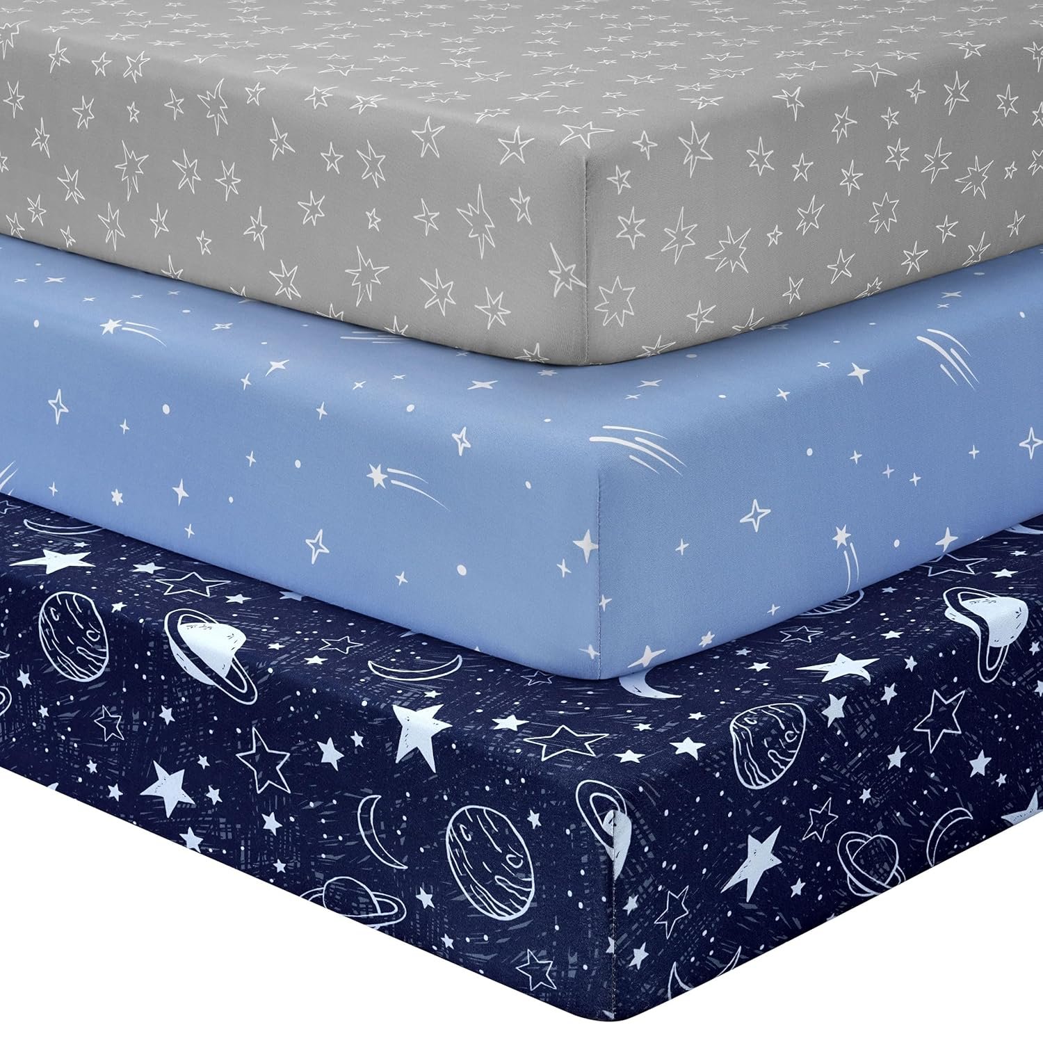 Baby Crib Sheets for Boys Girls, Fitted Crib Sheet Neutral 3 Pack for Standard Crib and Toddler Mattress, Breathable Soft Microfiber Baby Sheet 28x52x8in Blue Gray Planet