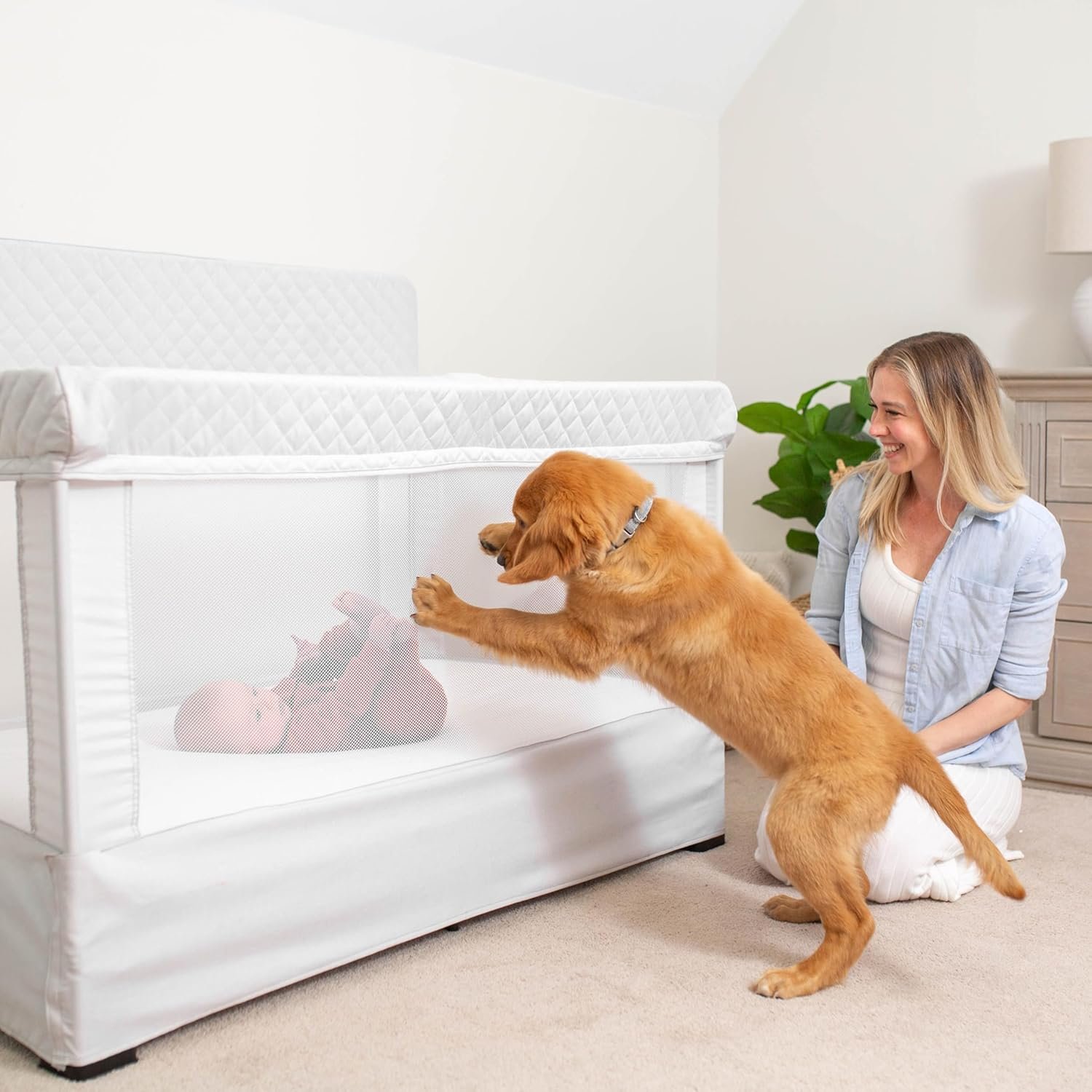 Create a tranquil retreat for your little one with this ‘first of its kind’ Lunaire full-size crib and playard, crafted from quality wipeable fabric and breathable mesh. Whether in your home or anywhere you go, this versatile piece is designed to complement any style while ensuring a safe and comfortable sleep environment. Its elegant design not only enhances your nursery but also provides a serene space for your baby to rest safely and peacefully.