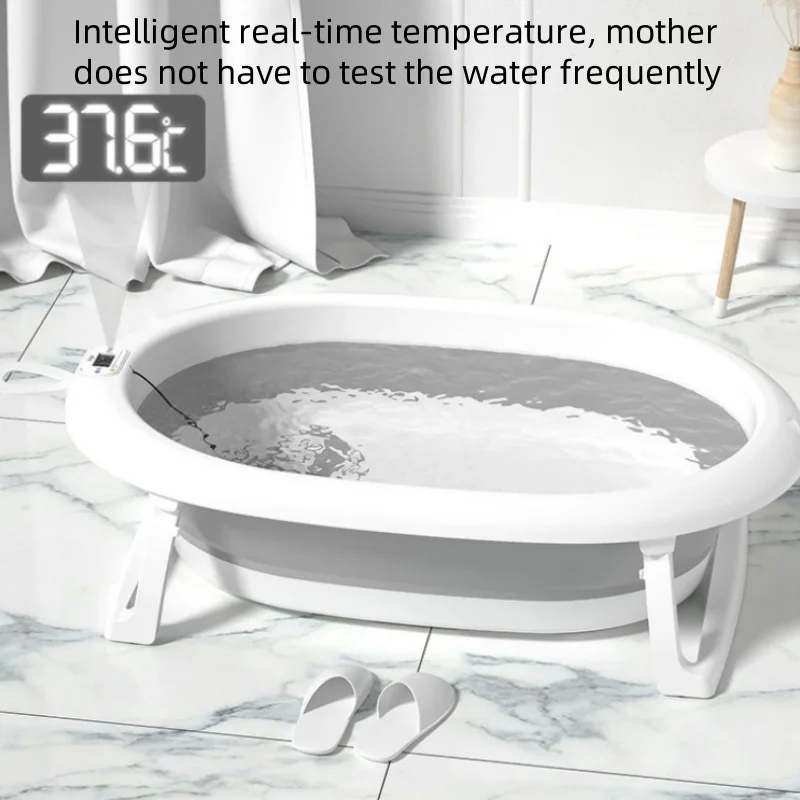 Baby digital temperature sensitive bath tub for baby sitting and lying folding large bath tub household newborn products