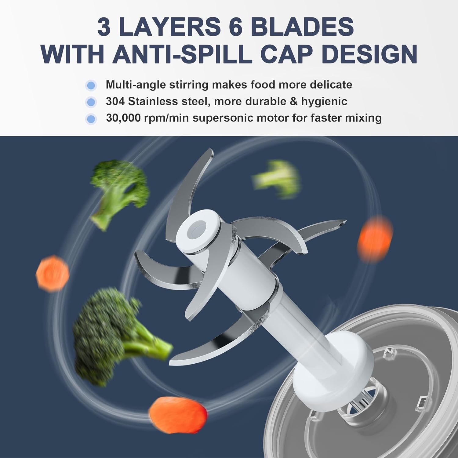 【Most Smooth Puree】Veroline baby food processor is equipped with six “S” sharpened 304 stainless steel blades and a 30000 RPM/min powerful motor, the baby puree maker makes it easy to create different concentrations of baby foods by stirring food in seconds at the push of a button. With the small spatula and the baby food container, you can store the puree well in the container, which is also easy to carry.