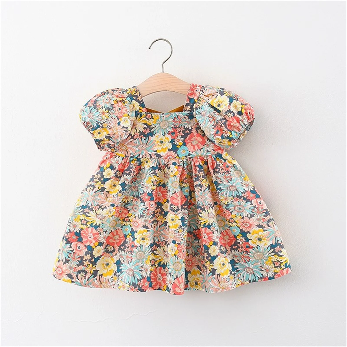 10 reviews for Baby Girl Beach Outfit Baby Sweet Floral Cross Over Short Sleeved Cotton Loose Fitting Dress For Summer Wear