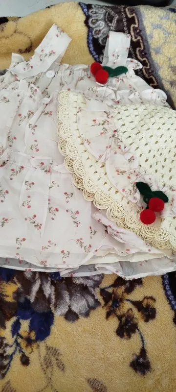 11 reviews for Baby Girl Dresses Summer Full Printed Floral Cherry Halter Girl Dresses Cute Cotton Multi Layer Girl Princess Dresses