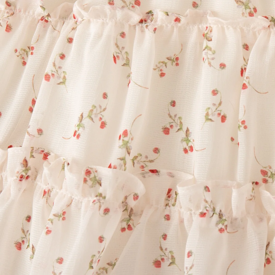 Baby Girl Dresses Summer Full Printed Floral Cherry Halter Girl Dresses Cute Cotton Multi Layer Girl Princess Dresses