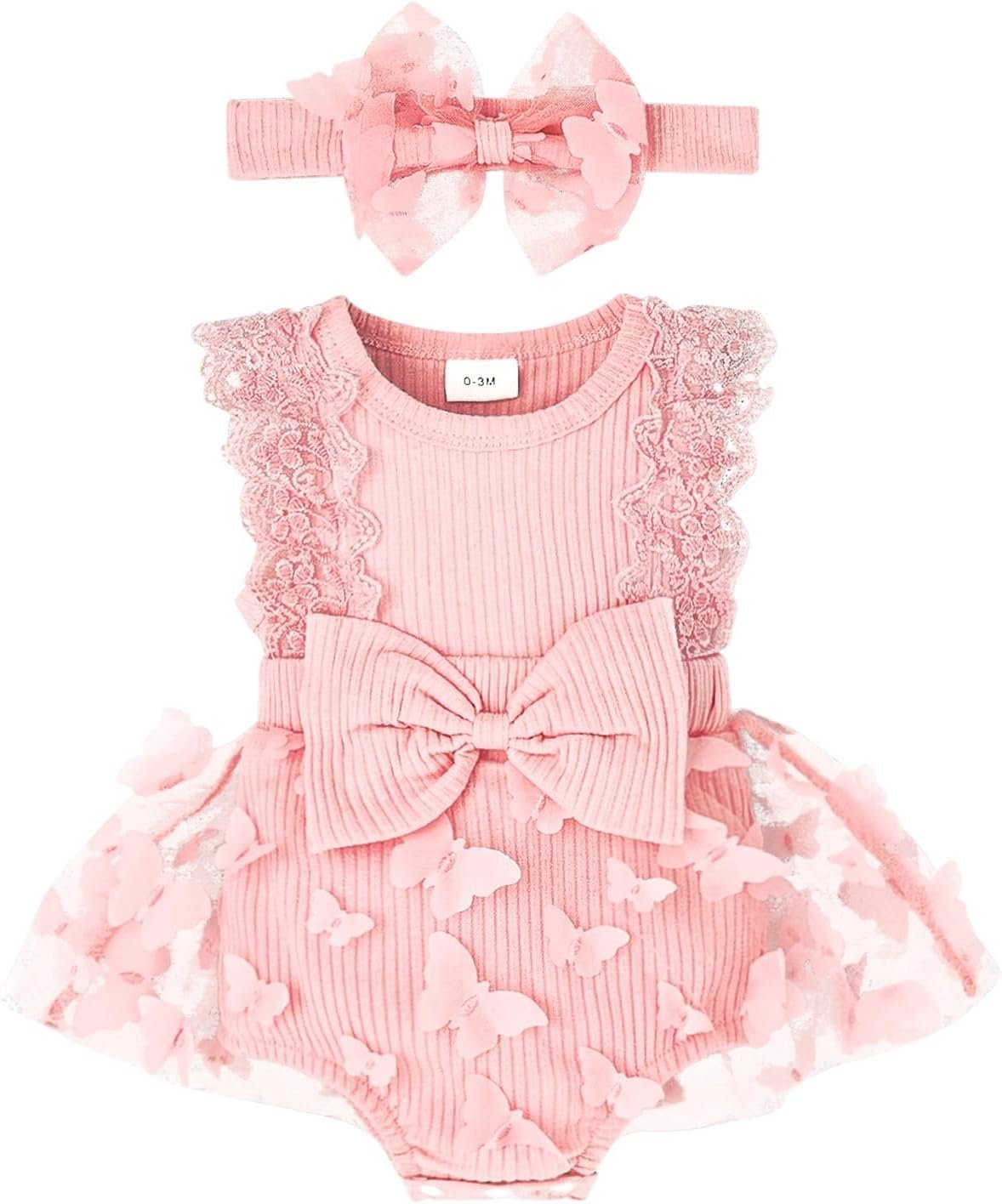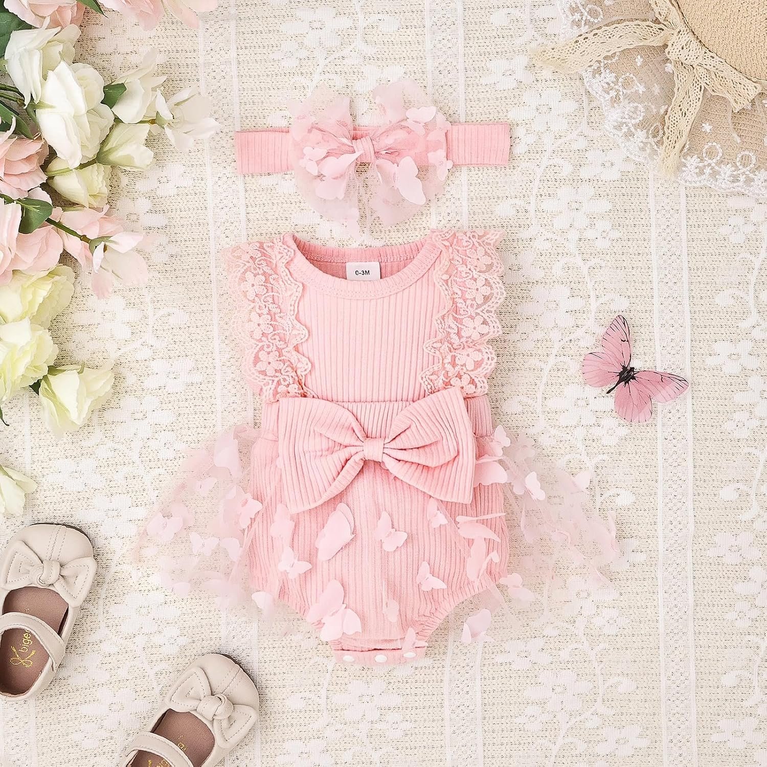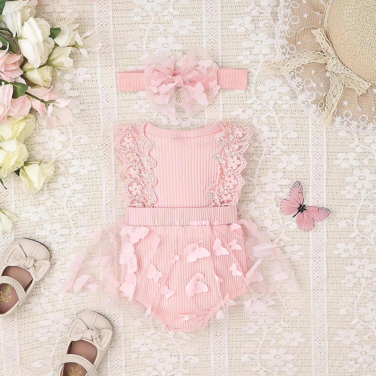 Baby Girl Summer Clothes Cute Newborn Girl Outfits Sleeveless Lace One Piece Romper + Headband 2pcs set 0-12 Months