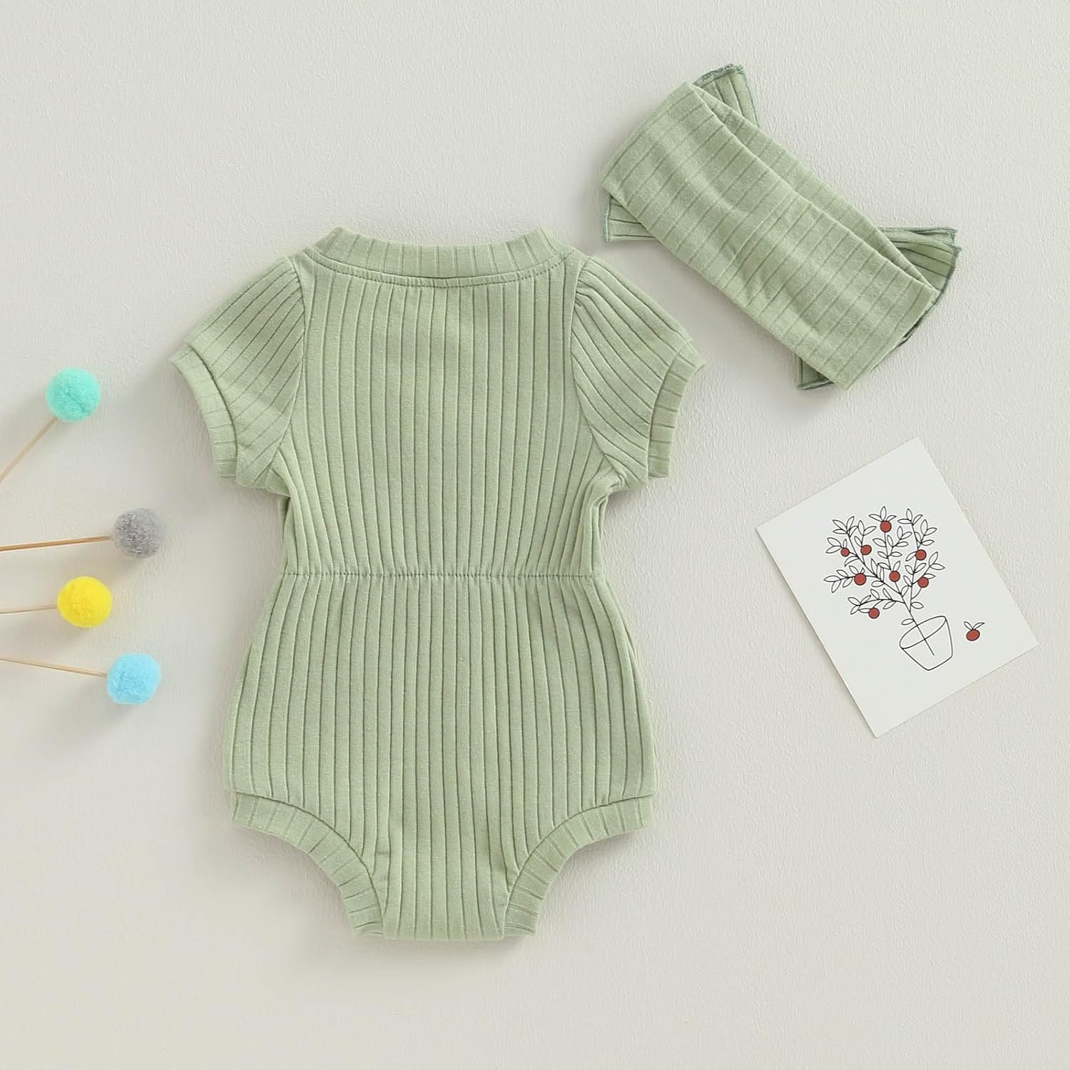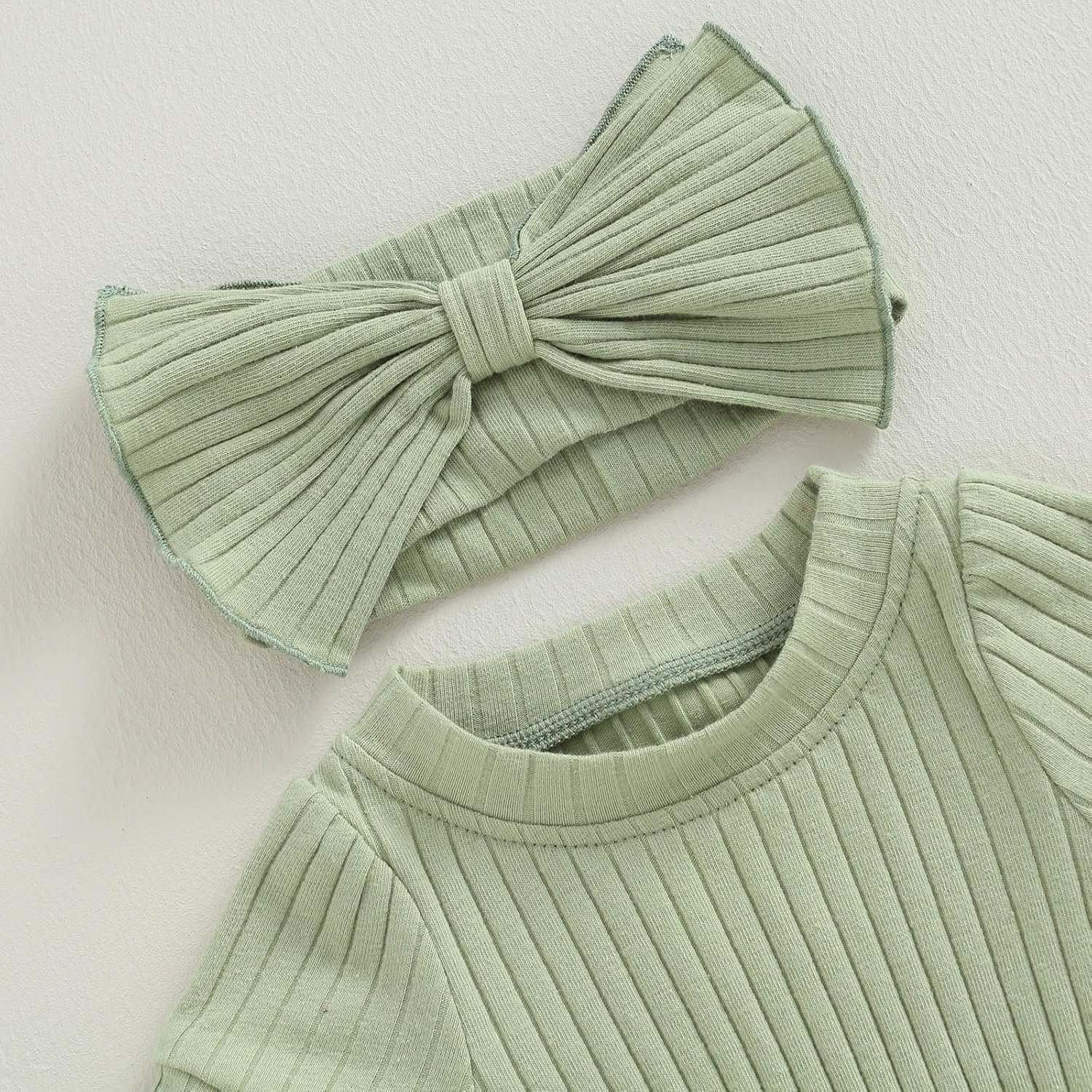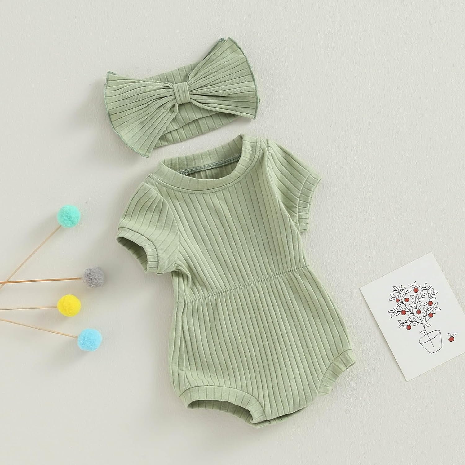 Baby Girl Summer Clothes Ribbed Short Sleeve Romper Solid Color Bodysuits Bow Headband Outfit Newborn Girl Jumpsuit