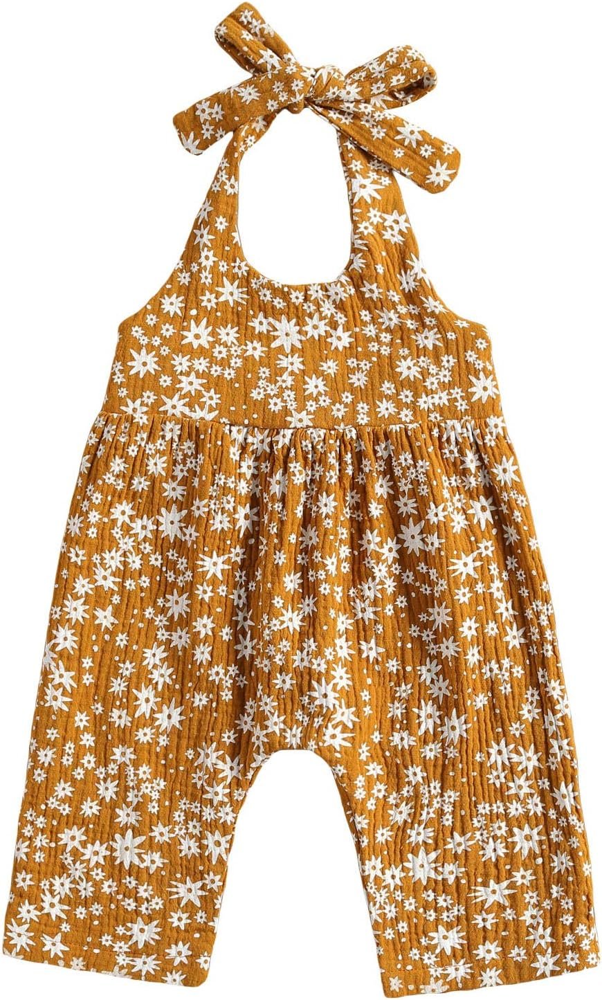 Baby Girls Daisy Playsuits Bodysuit+Headband Print Halter Romper Floral Jumpsuit Infant Onesie Summer Clothes