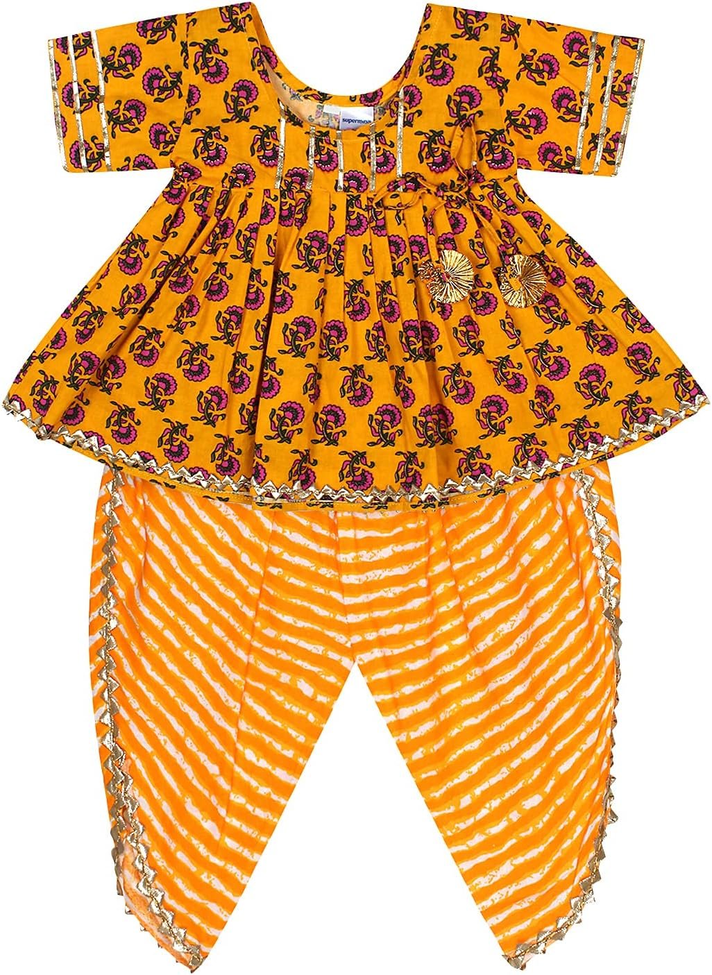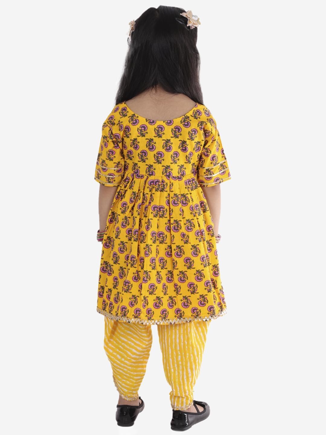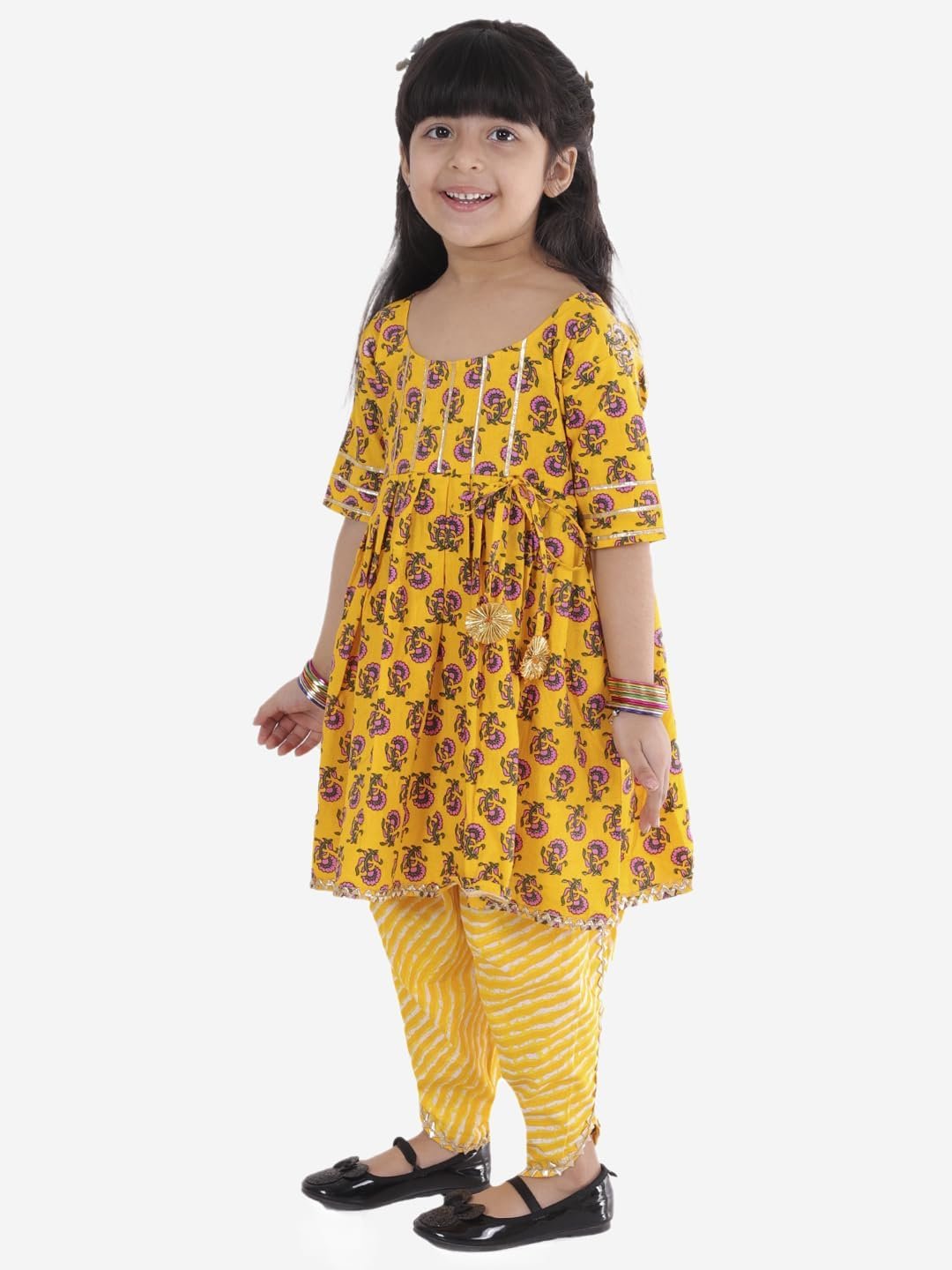 Baby Girls Jaipuri Print Frock Style Kurti with Frill Sleeves Salwar with Elastic Closure Ethnic Dress