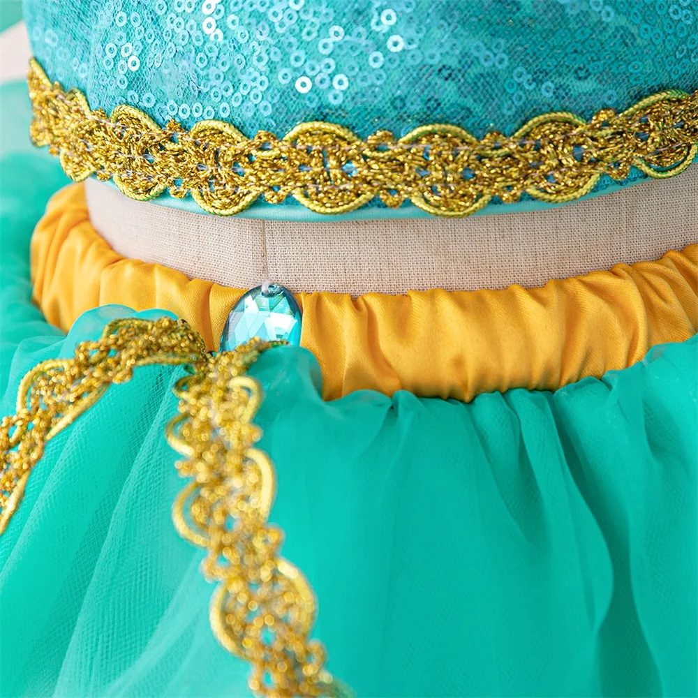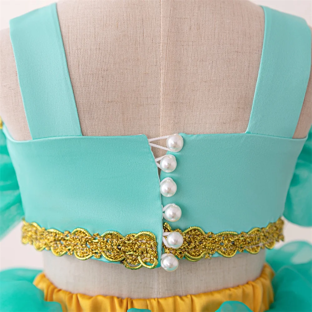 Baby Girls Jasmine Princess Dresses Girl Cosplay Party Dress Toddler Birthday Baptism Tulle Gown Kids Christmas Pageant Costumes