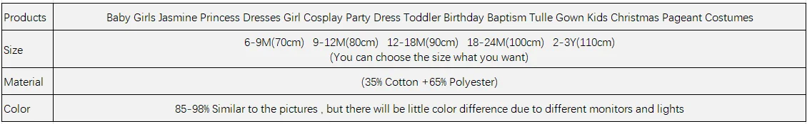 12 reviews for Baby Girls Jasmine Princess Dresses Girl Cosplay Party Dress Toddler Birthday Baptism Tulle Gown Kids Christmas Pageant Costumes