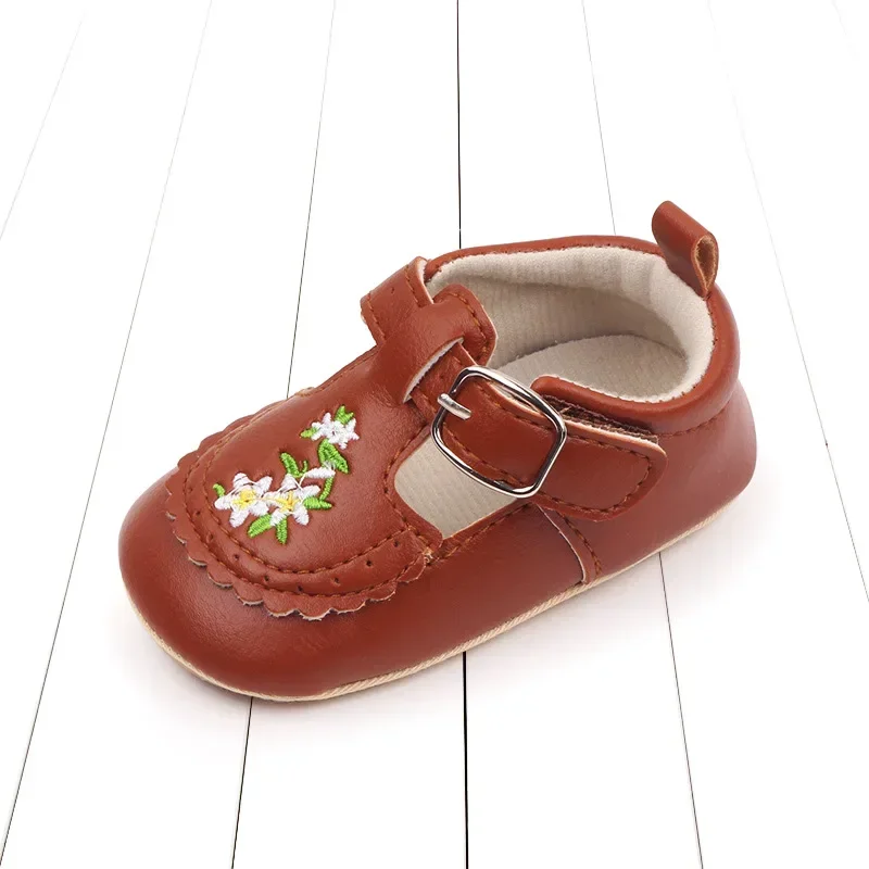 Baby Girls Princess Shoes, Soft PU Leather Embroidery Flower Non-slip First Walker Shoes Toddler Shoes