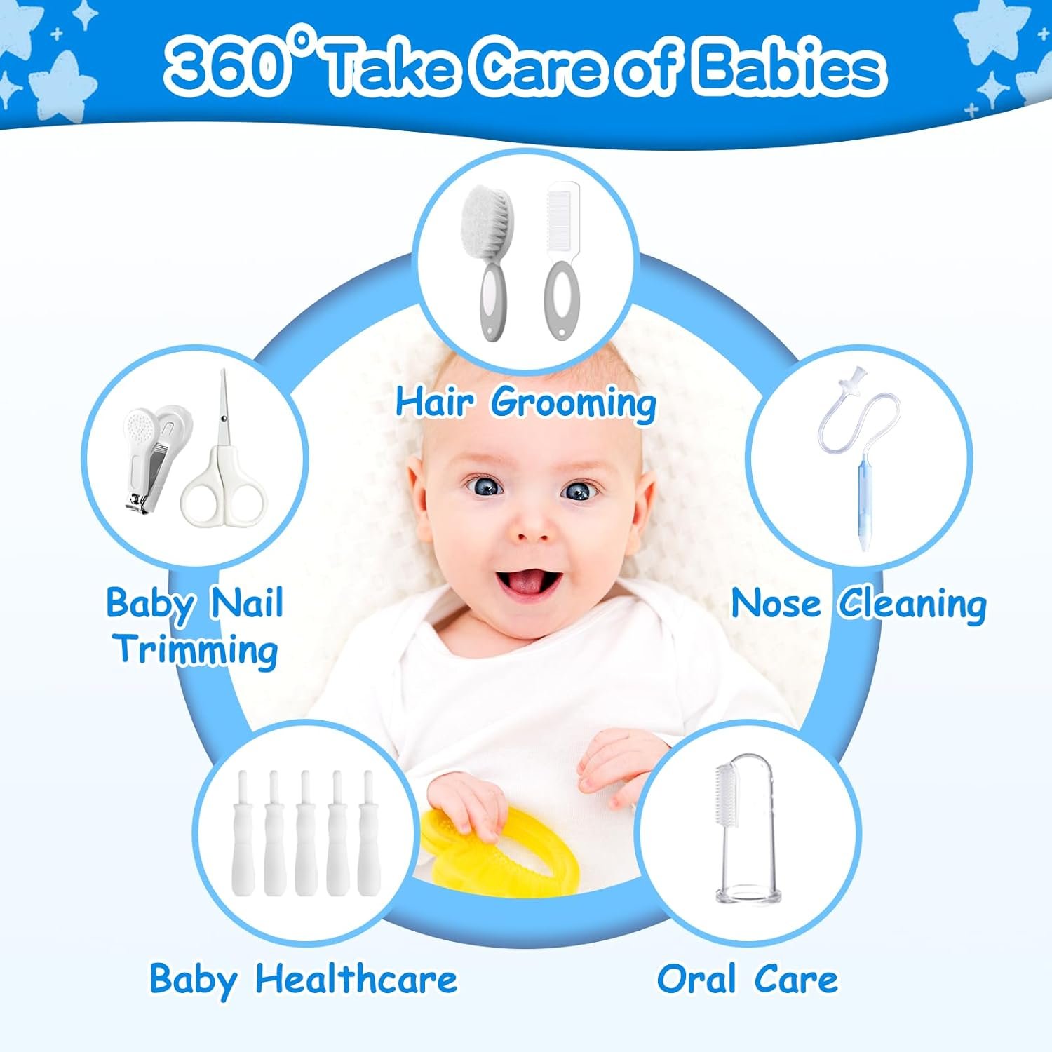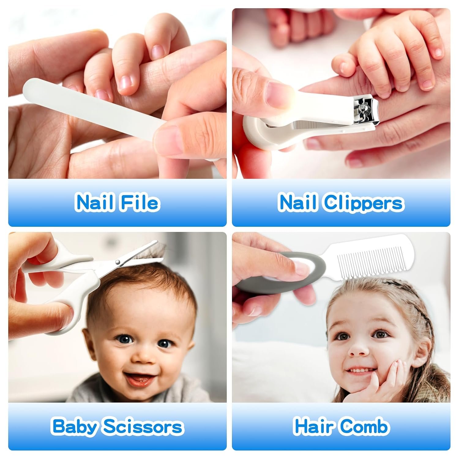 Safe Baby Grooming Kit: Made of premium-quality materials, which are soft and skin-friendly, the ergonomic design will not hurt babies’ tender skin, safe to use, and keeps baby always getting good grooming and health.