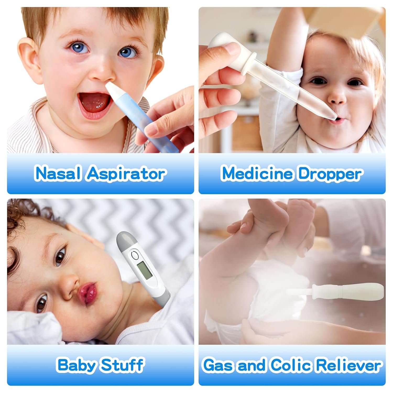 Upgrade Accessories: 1. Nasal aspirator with 2 flexible silicone tips and anti-reflux design, effectively removing a baby’s stuffy nose without hurting them. 2. Gas and colic reliever, which can release gas and calm colic safely, naturally, and instantly.