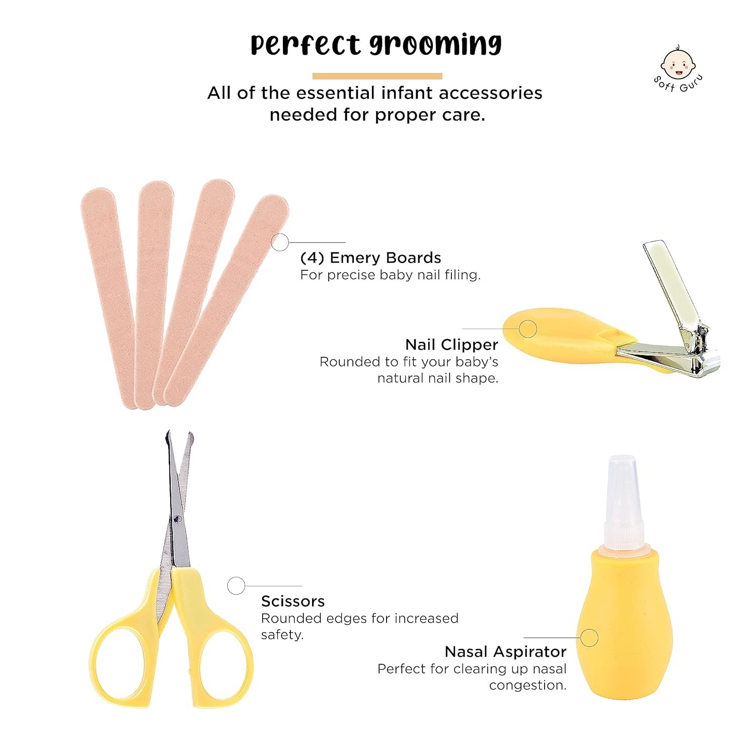 Safety is Key: Our kit is made with your baby’s safety in mind. Every item is gentle, just the right size, and designed to ensure a secure personal care experience for your little one.