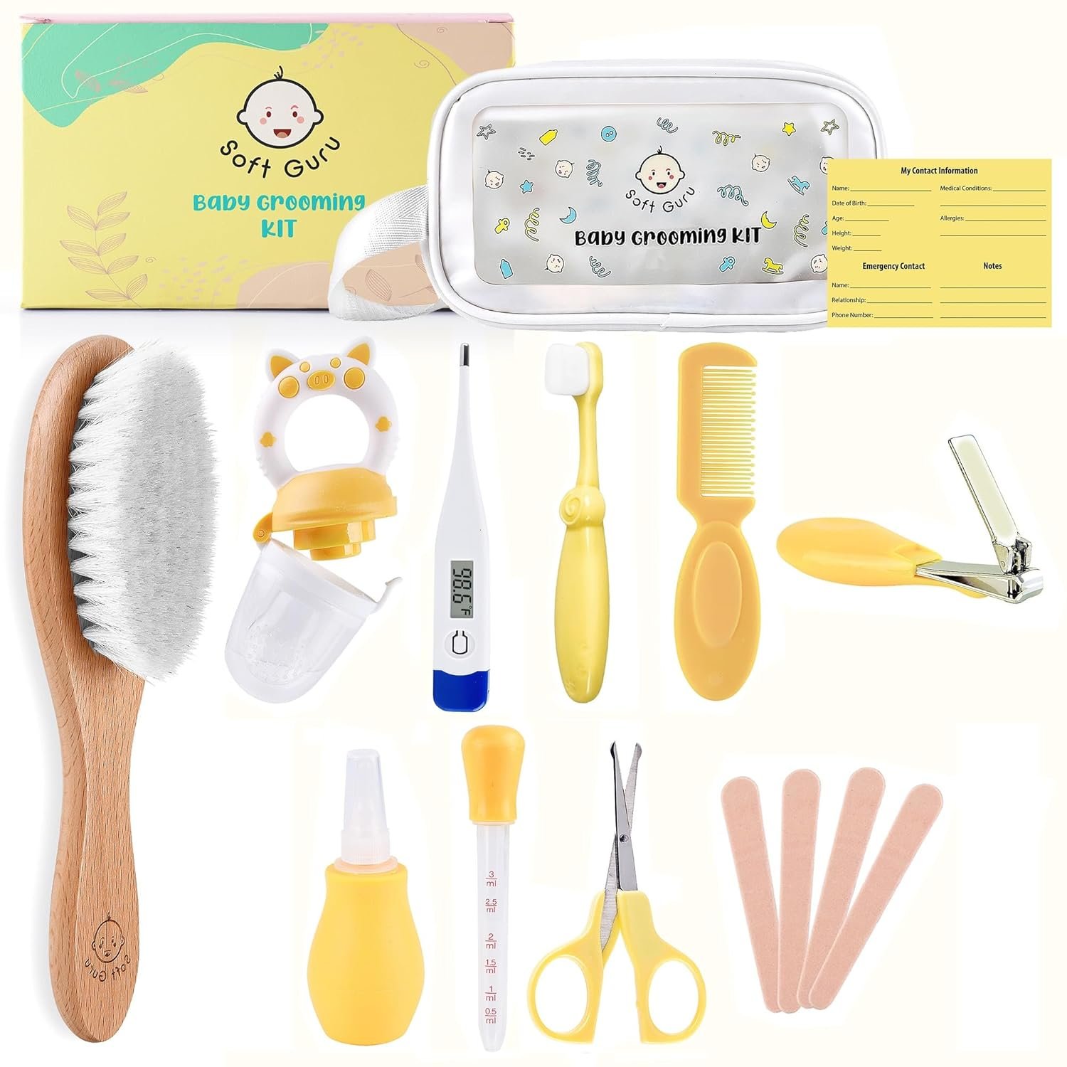 Easy Baby Care: Enjoy hassle-free personal care with our all-in-one kit. From a pacifier to an emergency contact card, our kit provides unmatched convenience for stress-free baby care. It’s the best gift for new parents.