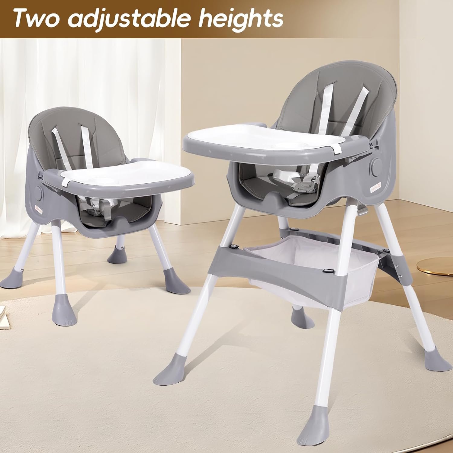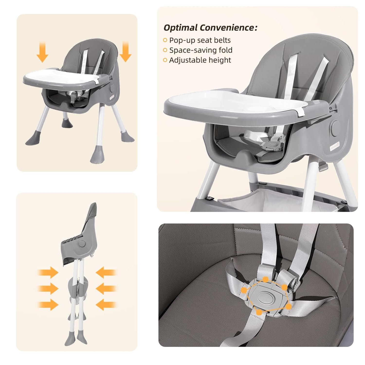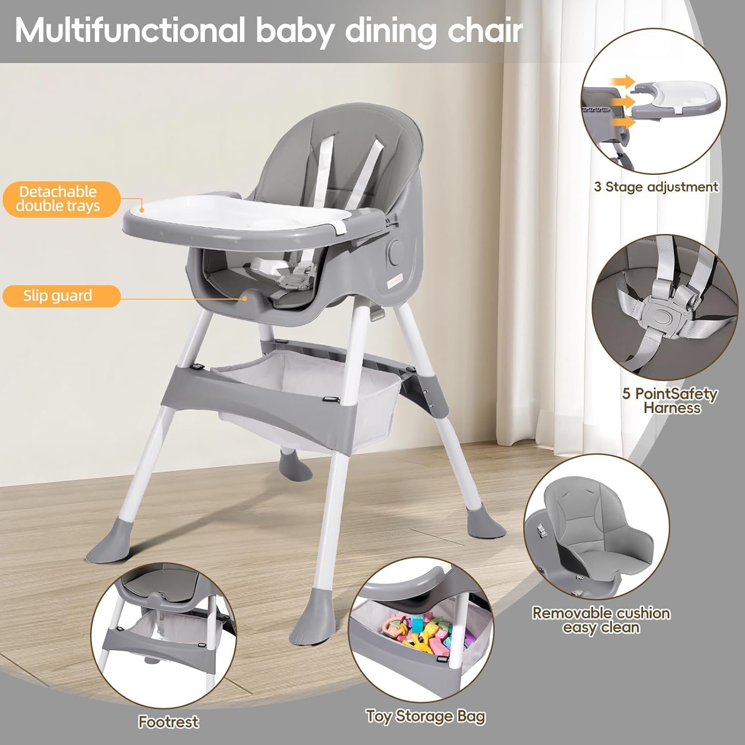 Baby High Chair, 6 in 1 Convertible High Chairs for Babies and Toddlers, Toddler Feeding Chair with Double Removable Tray, Adjustable Footrest & Machine Washable Cushion(Light Gray)