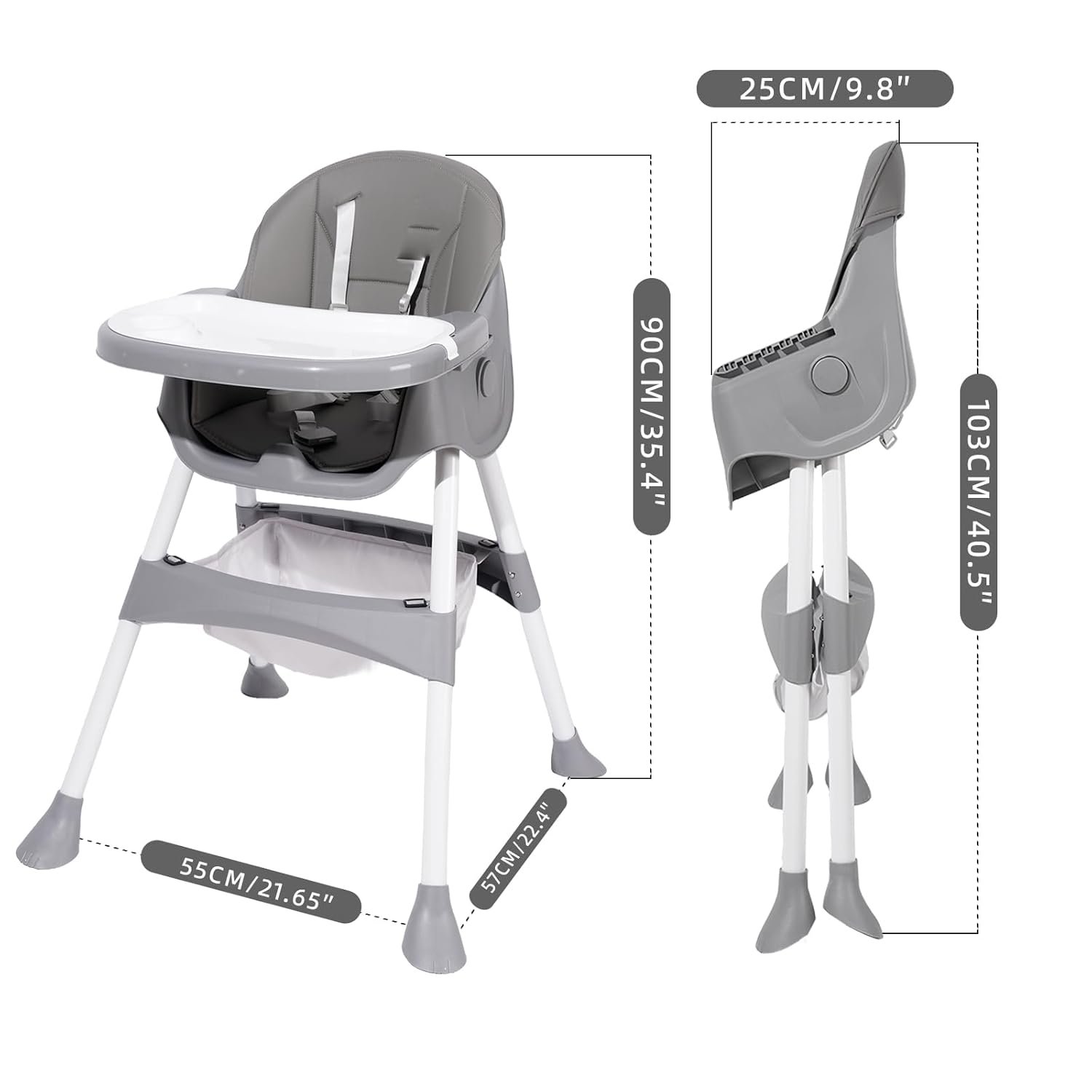 【Compact and foldable】: Our foldable high chair Dedicated to tight spaces, it folds quickly and easily with the push of a button on either side. This compact travel high chair folds easily into the trunk of your car, making it ideal for traveling, dining out or visiting friends and family.