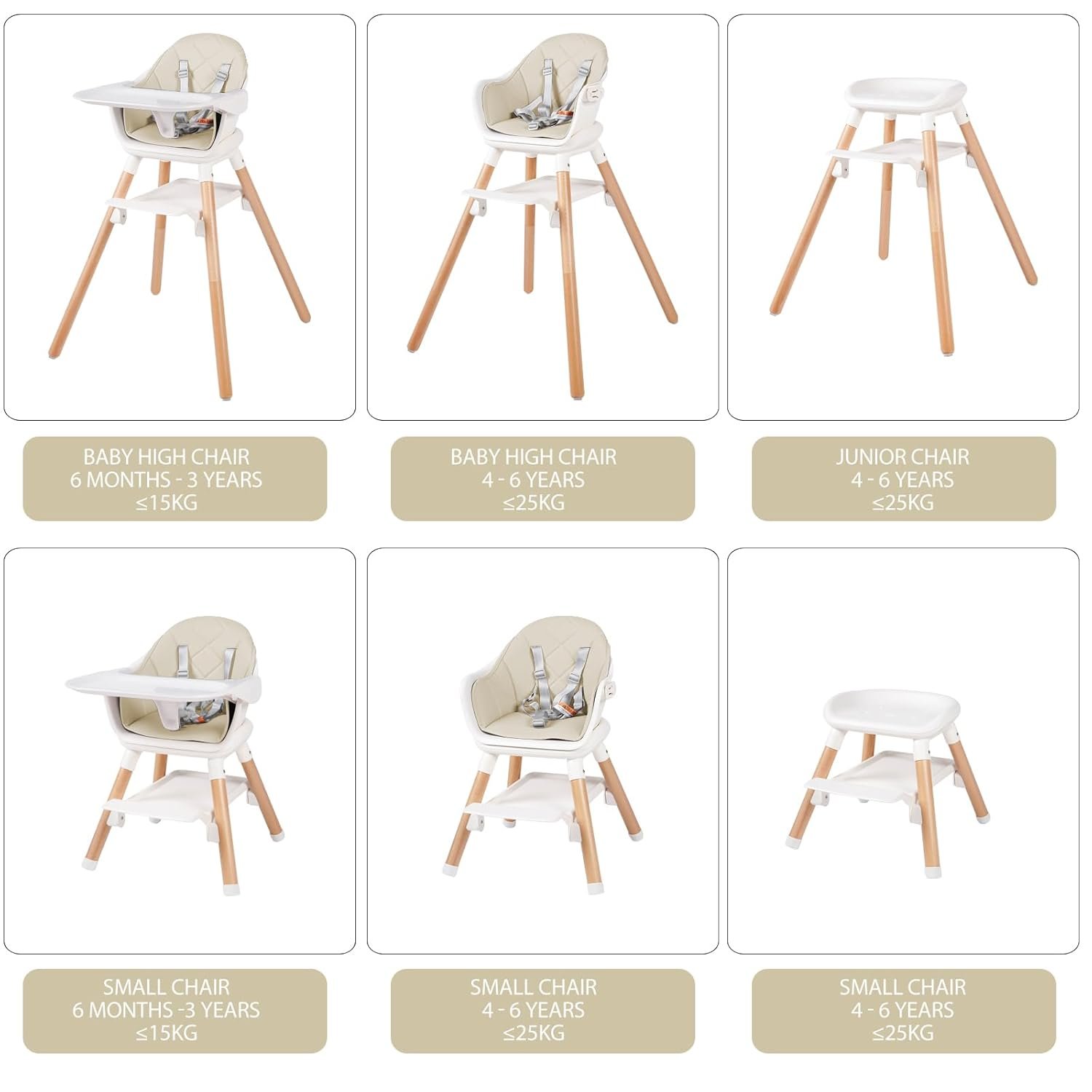 6 In 1 Baby High Chair: This multifunctional highchair can be easily converted into various modes: full size baby high chair, small dining chair, toddler chair with 2 heights, counter-height stool or small stool. It is designed to help your toddler in all growing stages