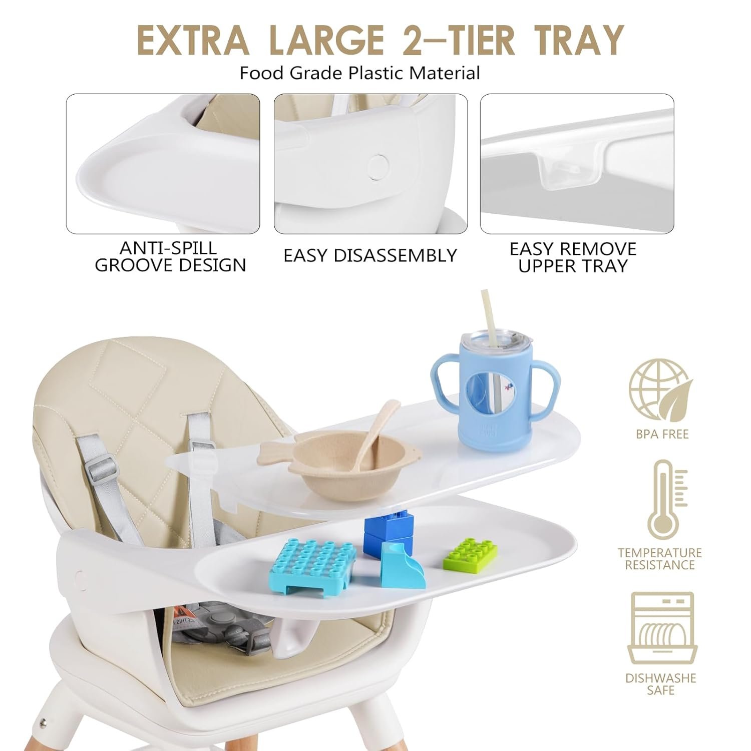 Easy to Clean Design: Our seat cushions are made from high quality PU leather to ensure that stains won’t seep in, just wipe gently with a damp cloth to get clean; The removable tray makes it easier for parents to clean, one layer for playing with baby and one layer for baby feeding
