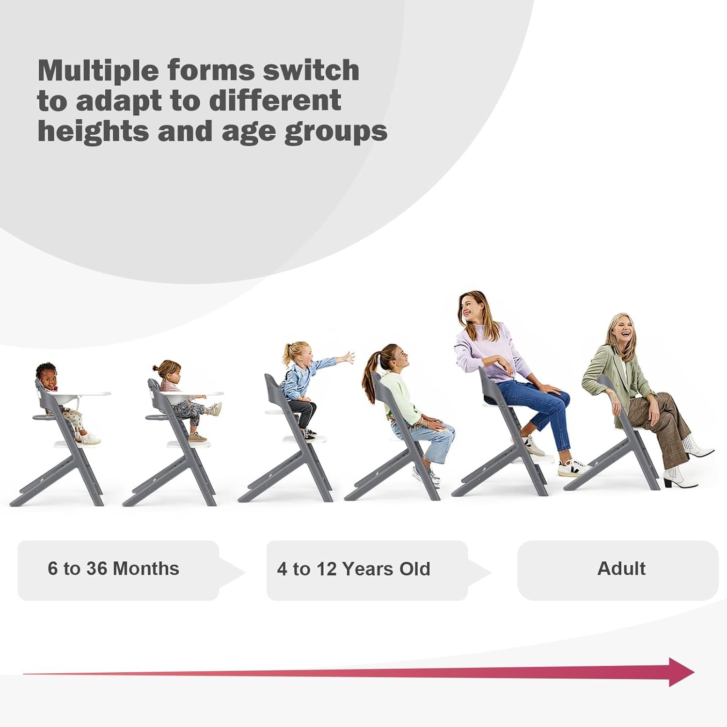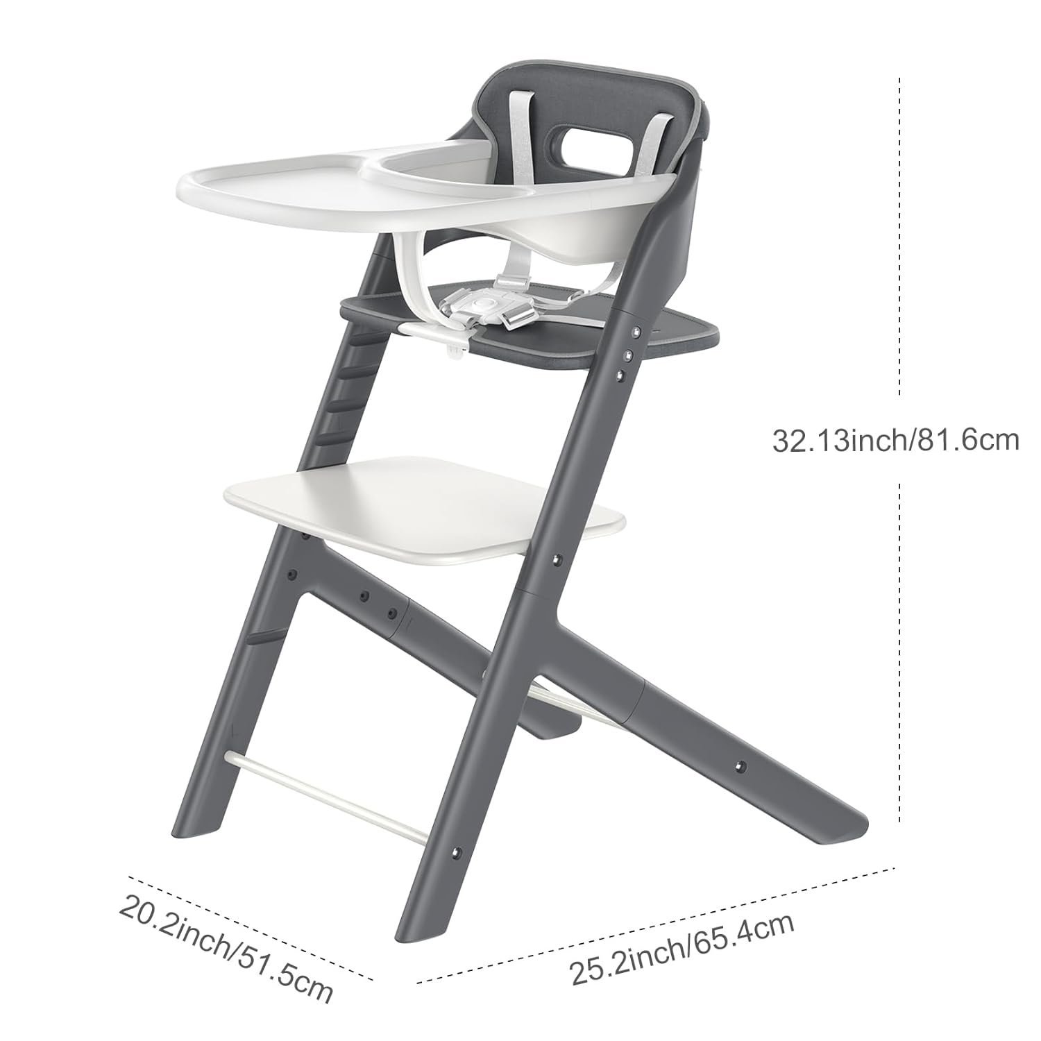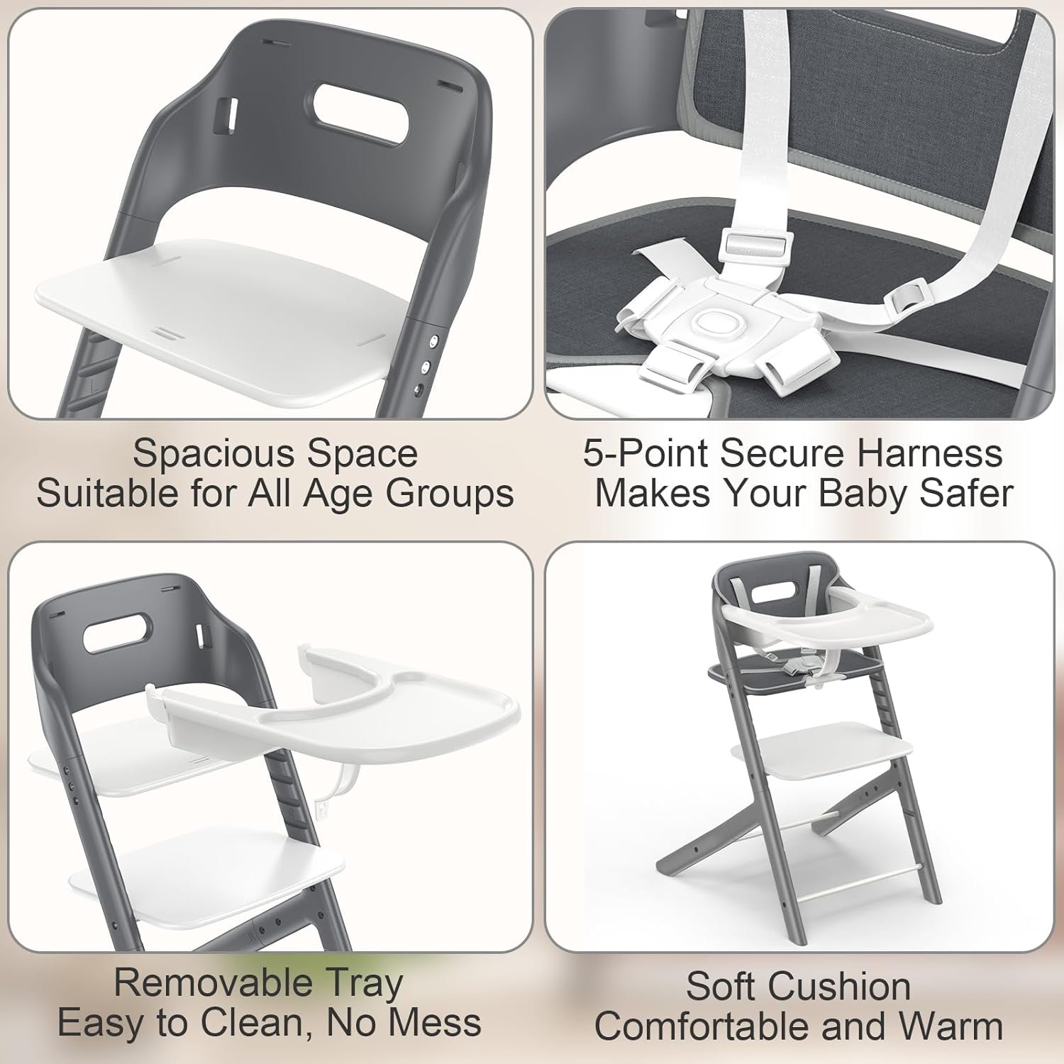 Baby High Chair with Tray, Cushion&Safety Harness – Adjustable Step Stool and Footrest Heights High Chairs for Babies and Toddlers 6+ Months,Easy to Clean, 200lbs Bearing, Secure & Stable