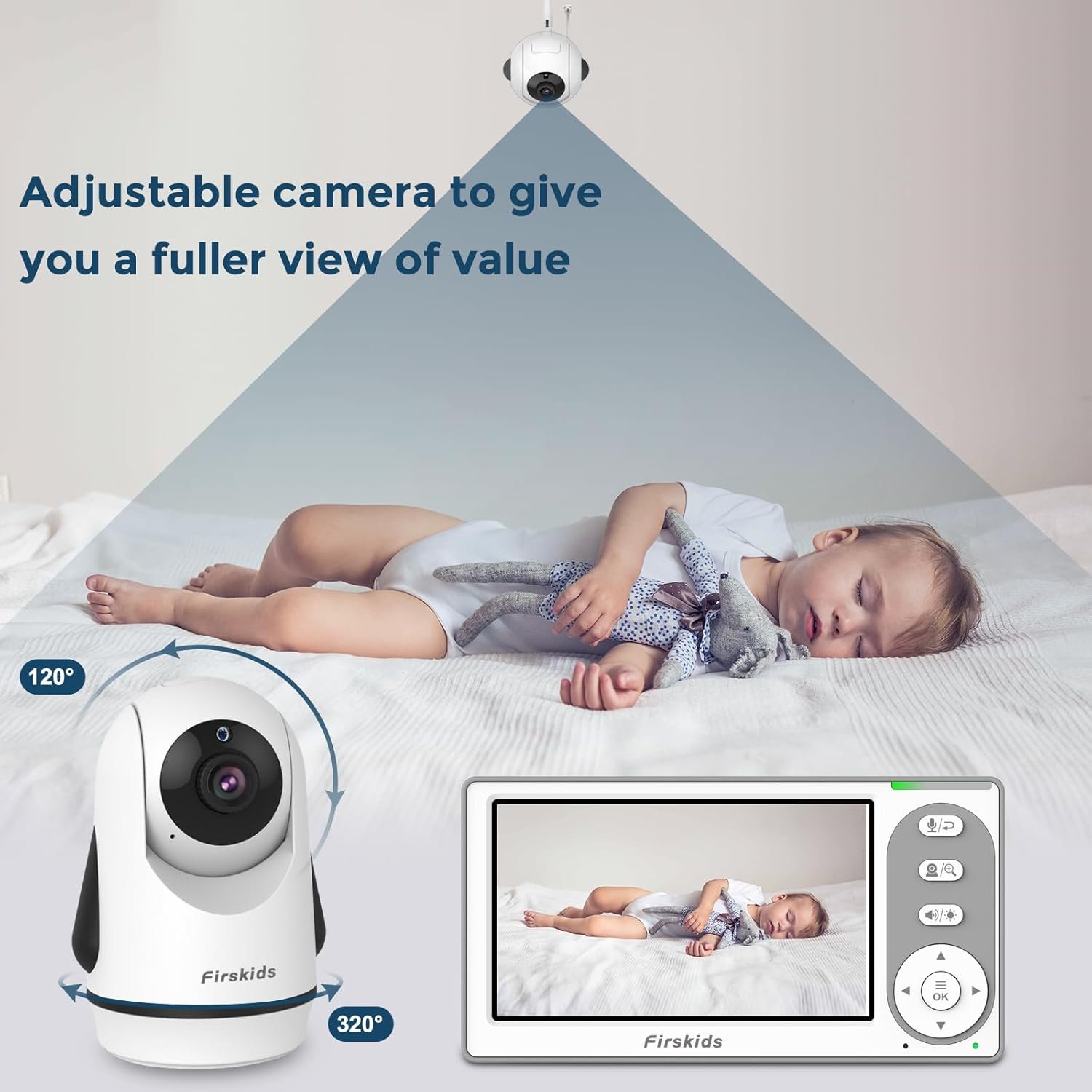 【4.3” Ips Display Monitor with Remote Pan Tilt And Zoom Camera】The baby monitor camera provide clearly and in real-time vison with its 320-degree pan and 120-degree tilt function, along with the 2x zoom feature to help you take care your child anywhere in your house. IPS LCD display has true and vivid colors, so you can see your baby clearly no matter which angle you stand at, more firendly to your eyes.