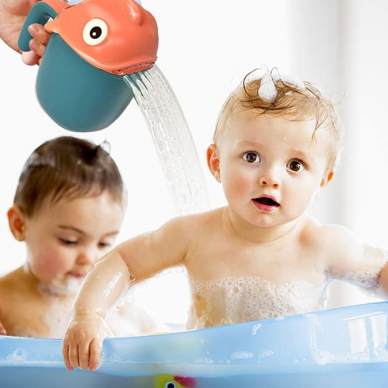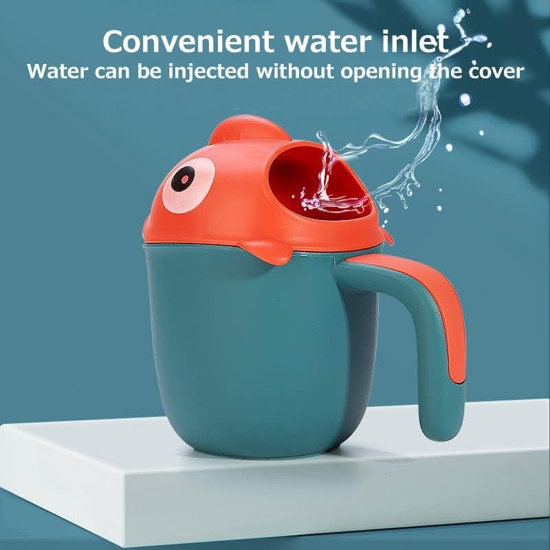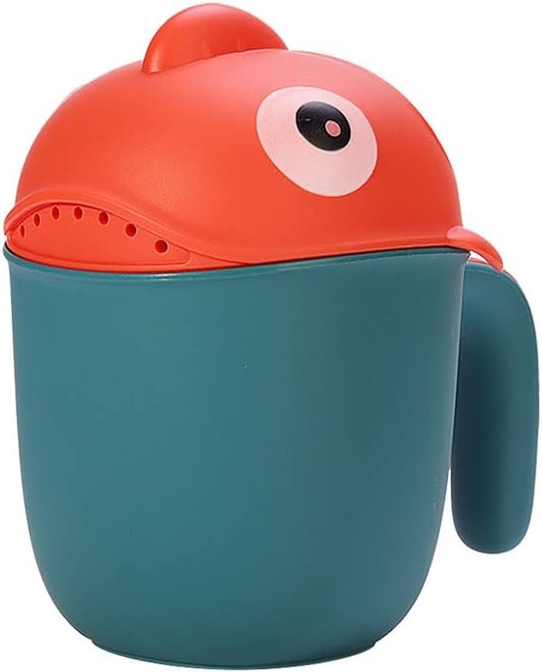 💕CARTOON SHAPE — The cartoon fish shaped bath rinse cup attracts the baby’s attention, cute design is deeply loved by the children, and makes them stop resisting shower.