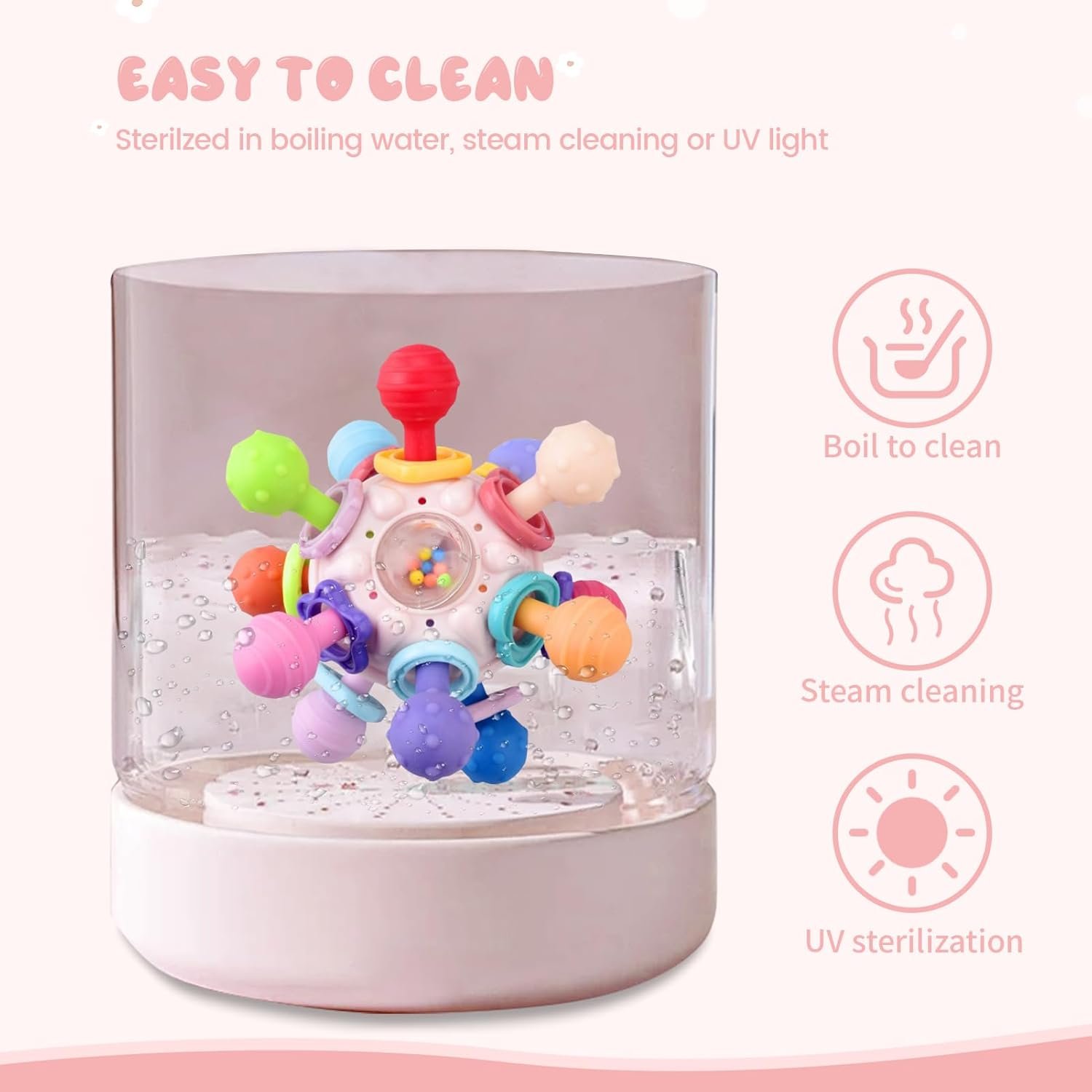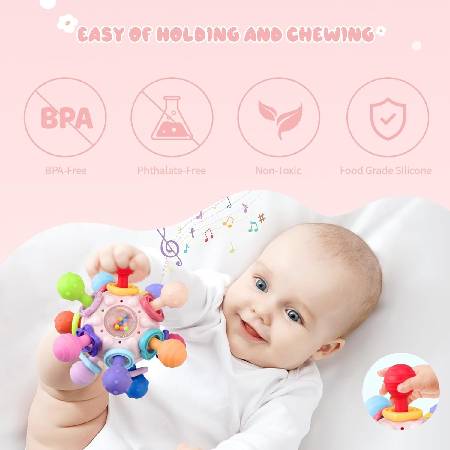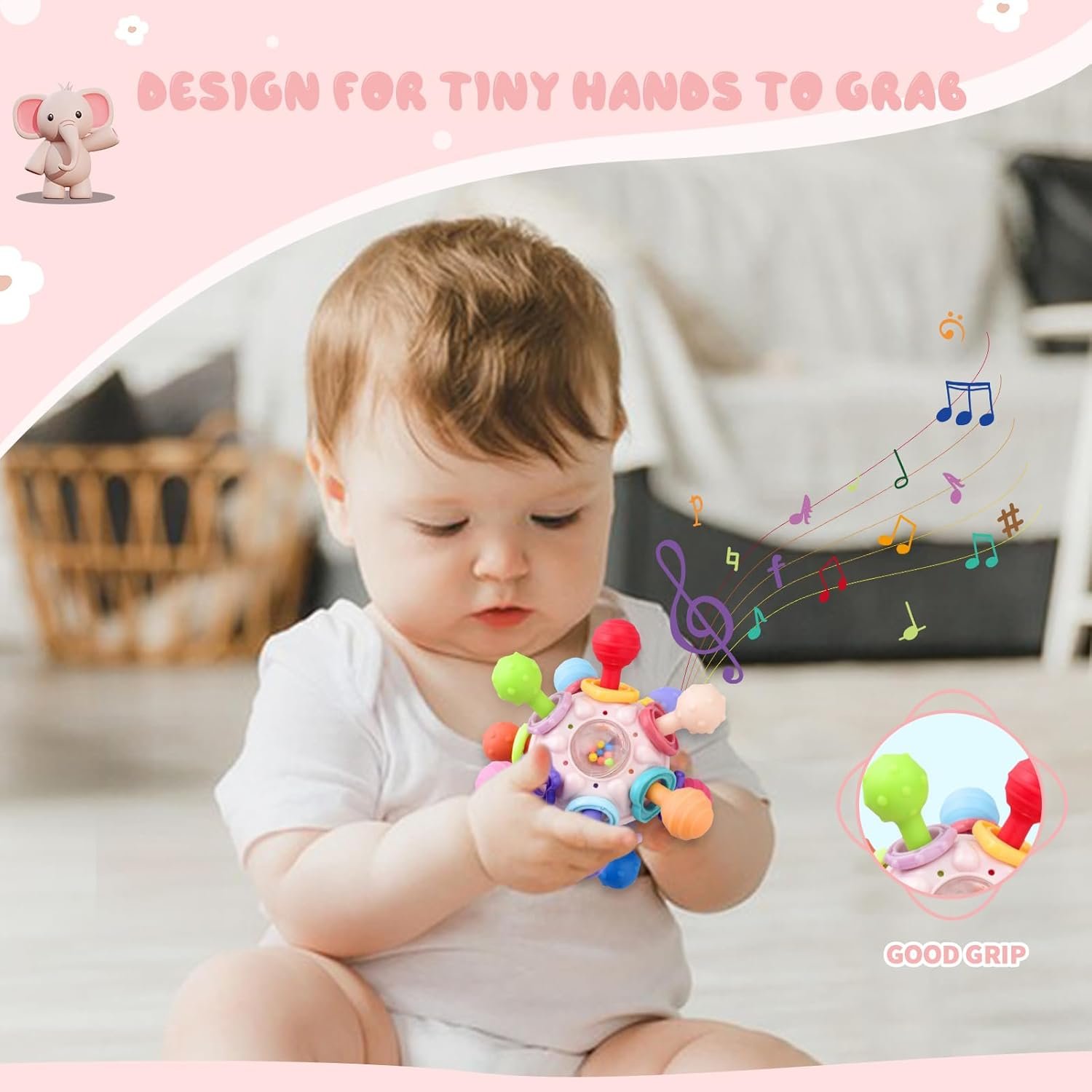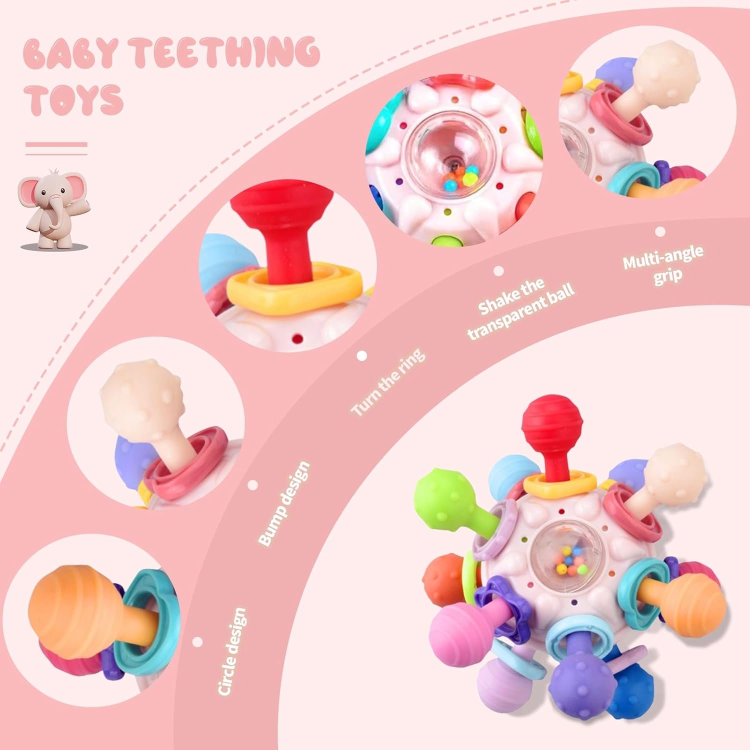 Baby Sensory Teething Toys for 0-6 6-12 Months, Infant Montessori Toys, Teethers for Babies 0 3 6 9 12 18 Months, Baby Toys Boys Girls Gifts Newborn Essentials Must Haves (Pink)