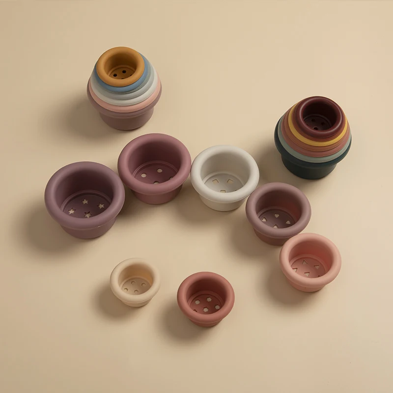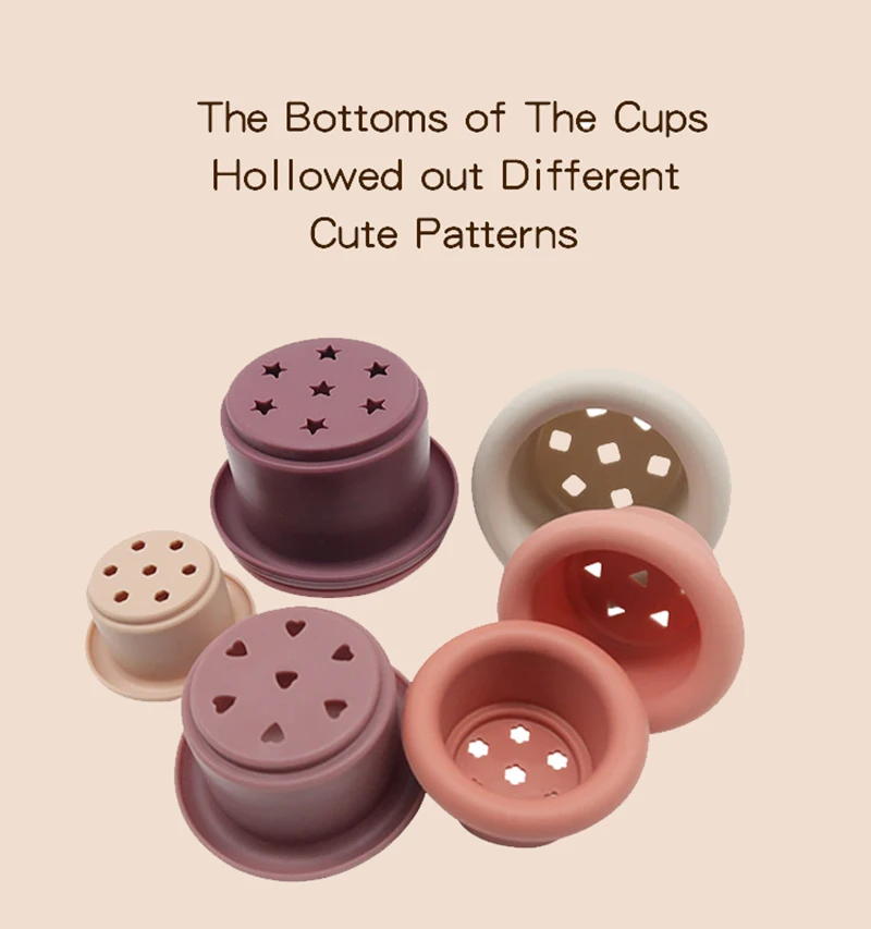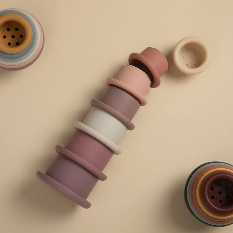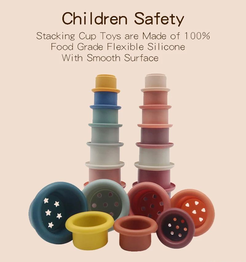 Baby Silicone Stacking Cups Toys BPA Free Nesting Montessori Building Block Toy Stack Tower for Toddlers Gifts Early Educational
