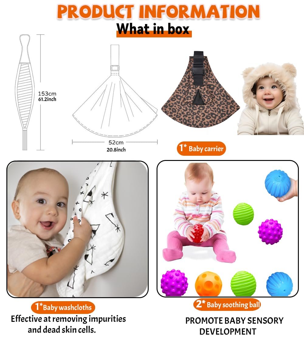 Baby Sling Carrier Adjustable Baby Sling 2025 Upgraded Toddler Sling Comfortable Baby Wrap Carriers Ergonomic-Designed, Travel Friendly Carrying 10-45 LbsLeopard