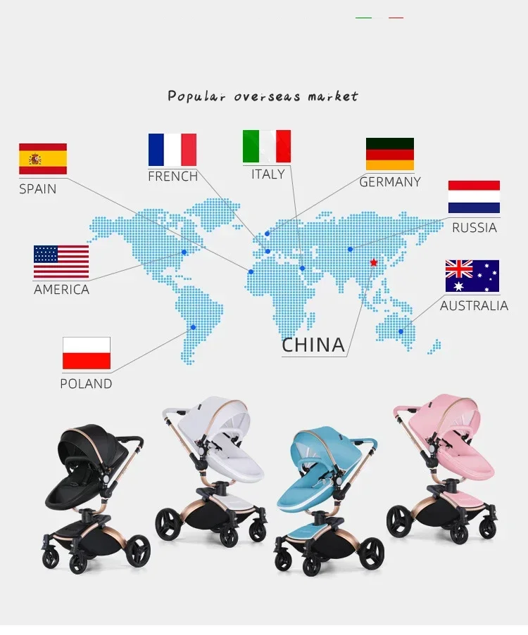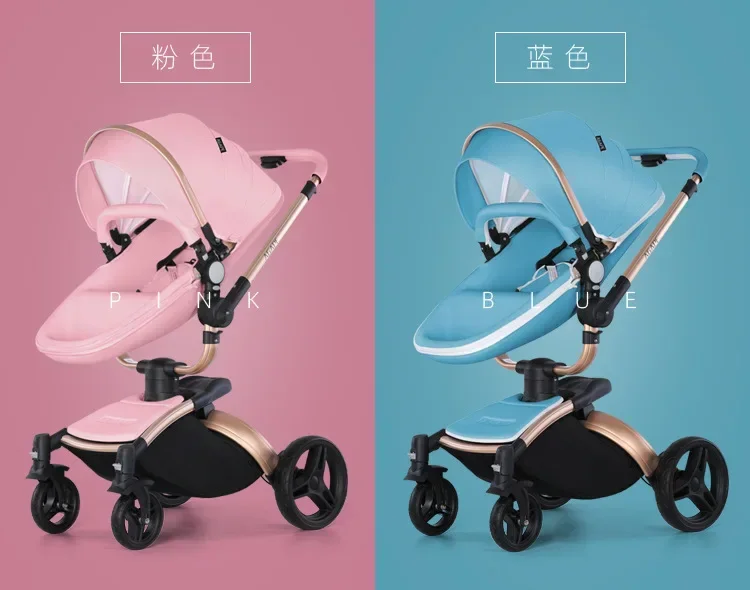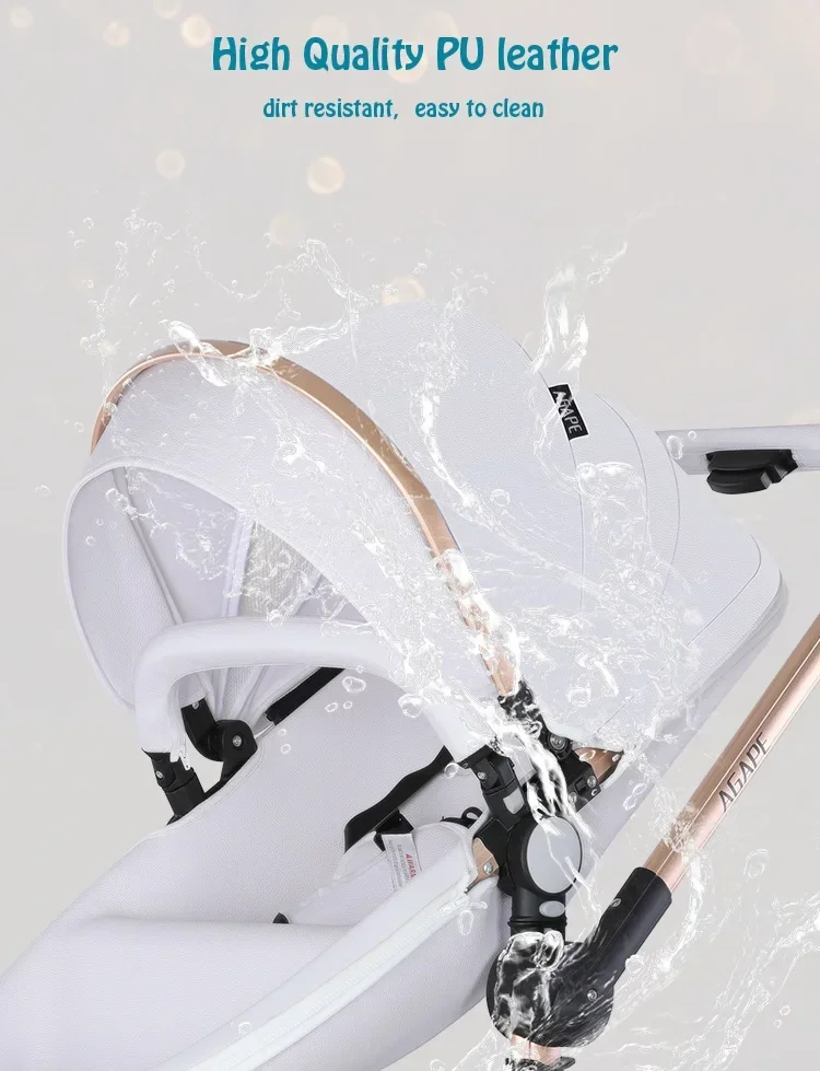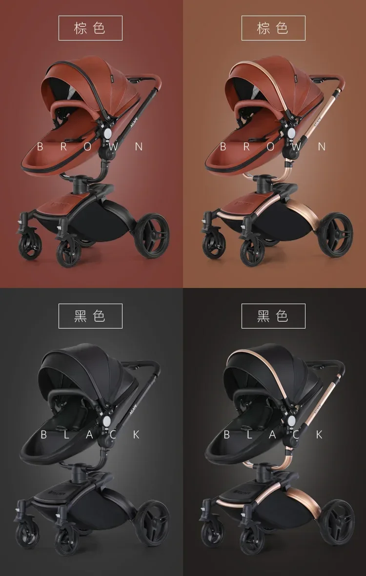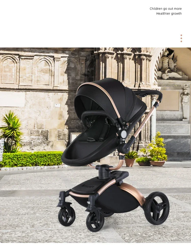 Baby stroller 3in1 Two-way High Landscape baby carriage PU leather Foldable shock-absorbing eggshell stroller 2in1