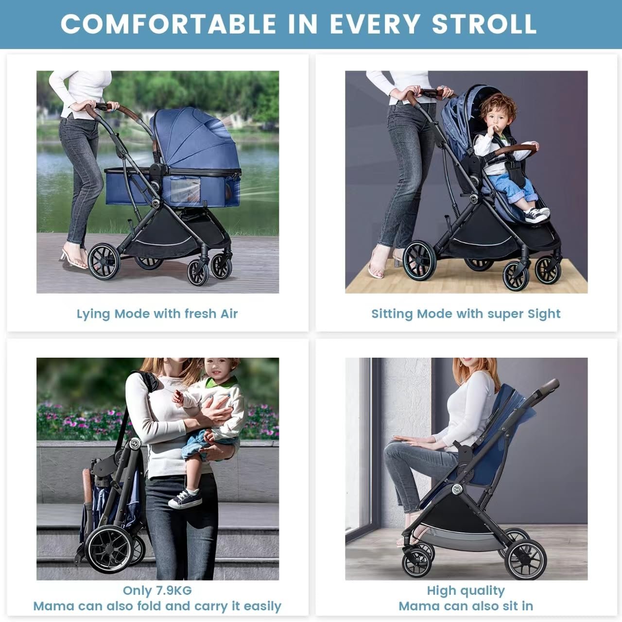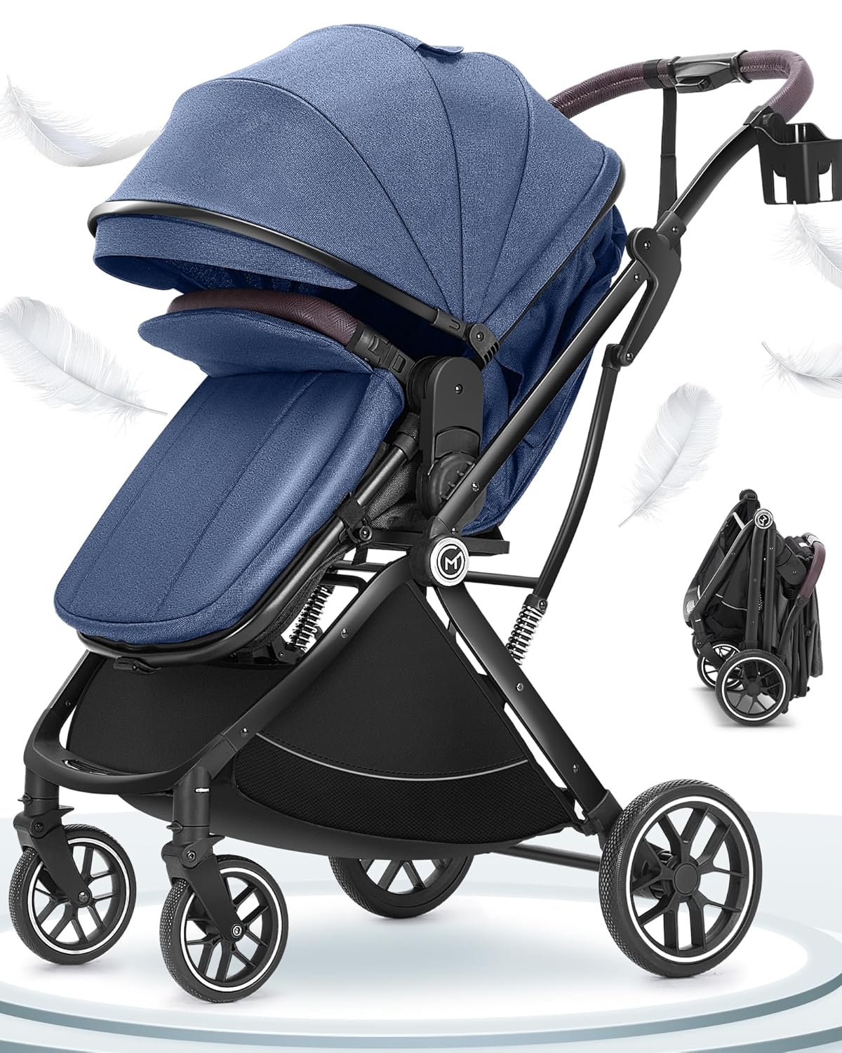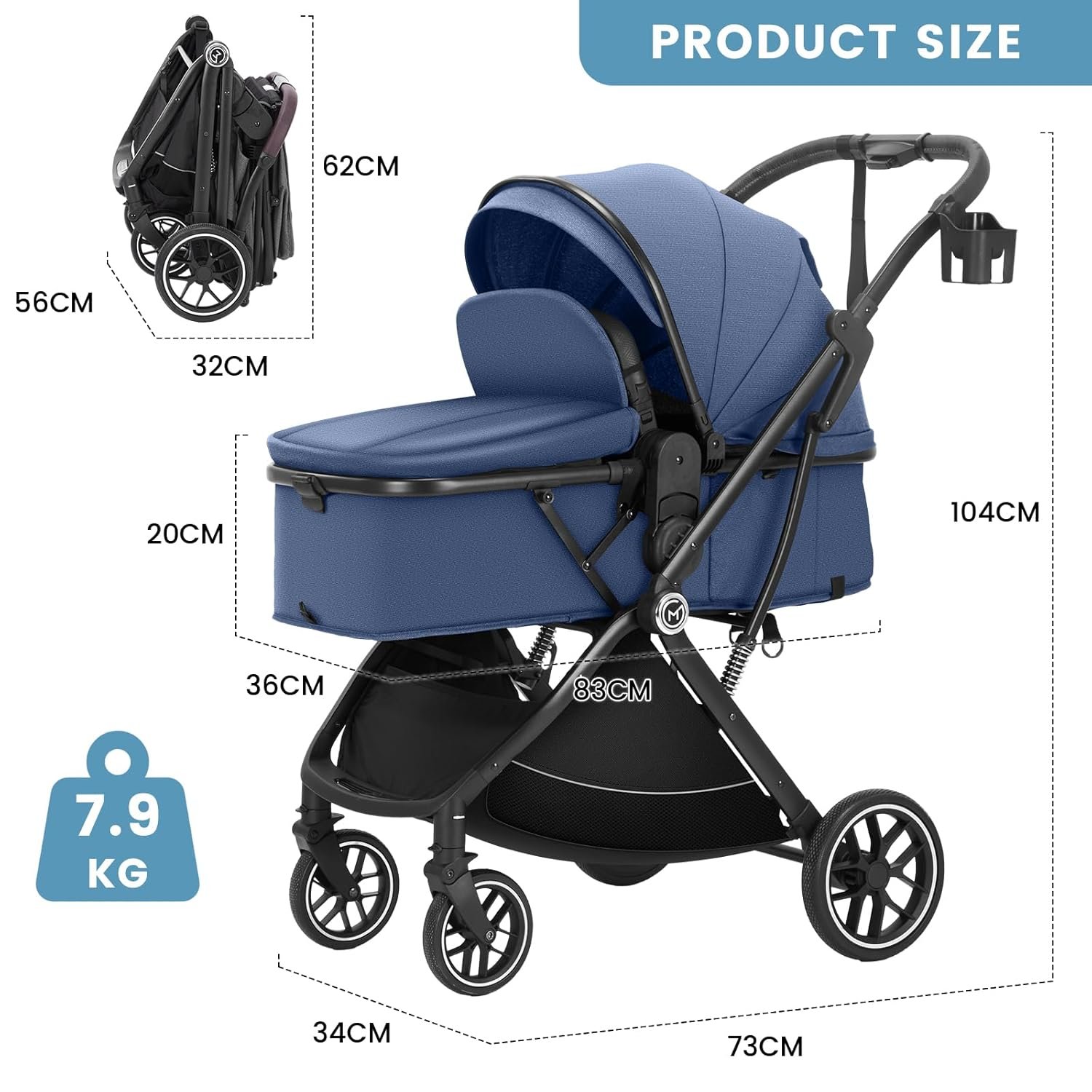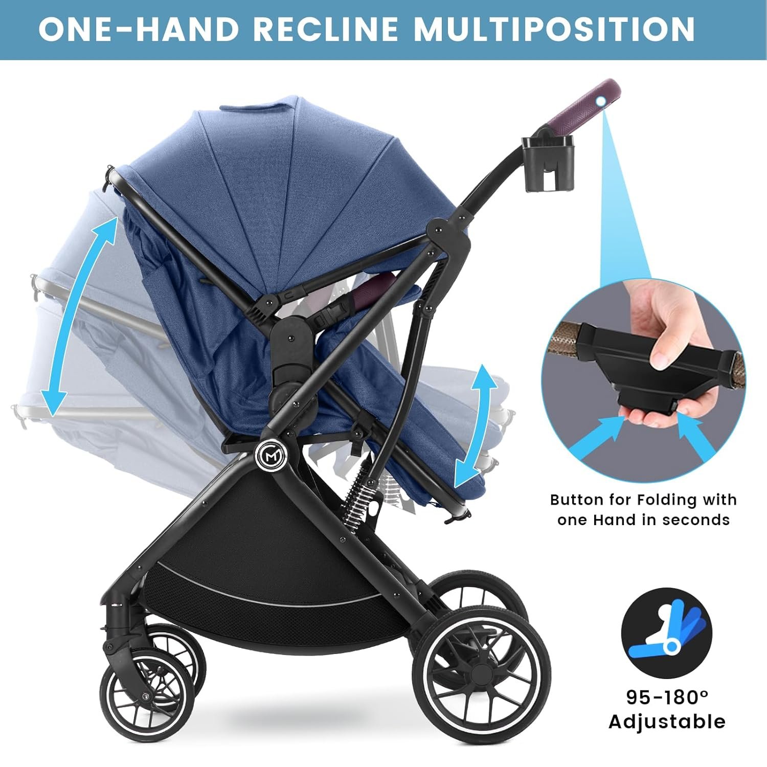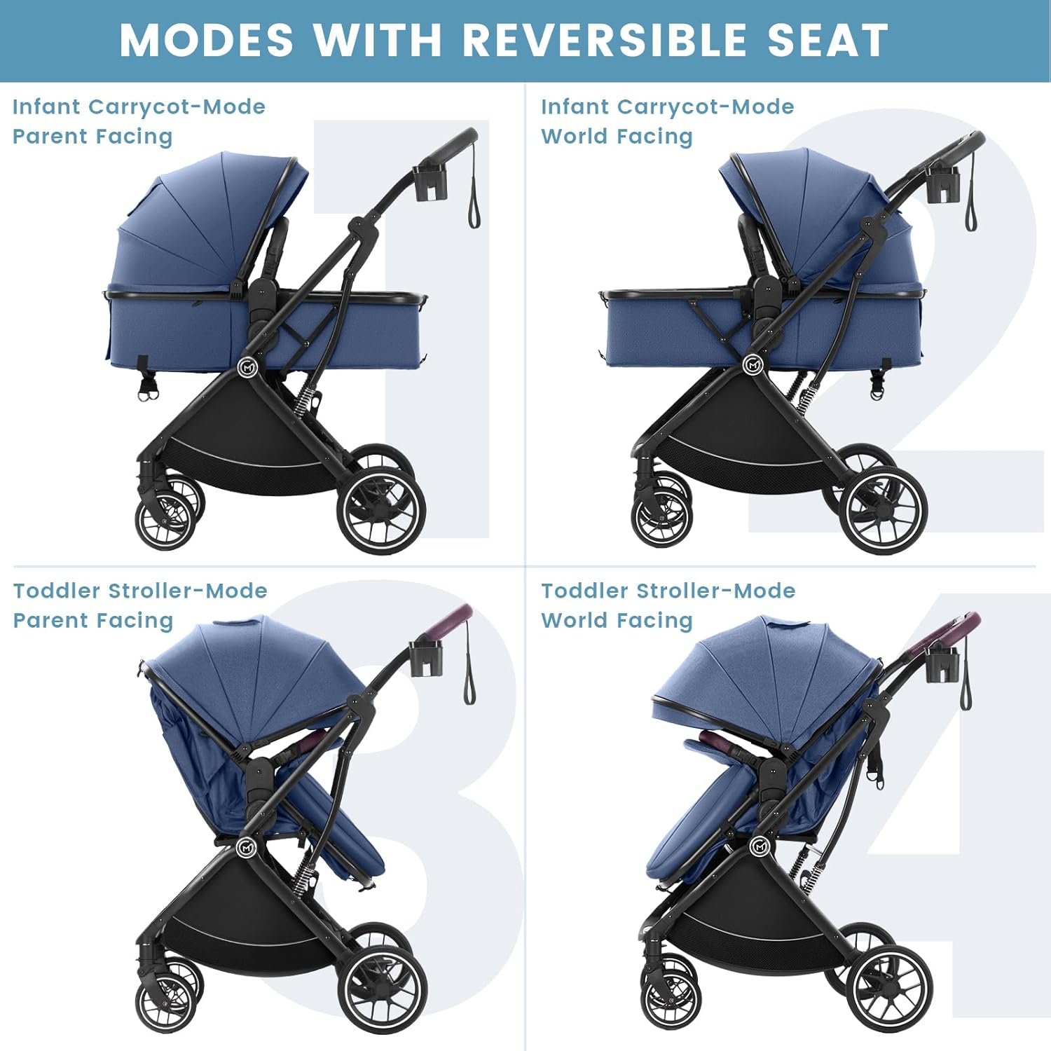 Baby Stroller Bassinet 3 in 1 Newborn,Convertible Portable Strollers for Toddler Infant, Foldable Stroller with One Hand,Reversible Seat,Extra Storage (Blue)