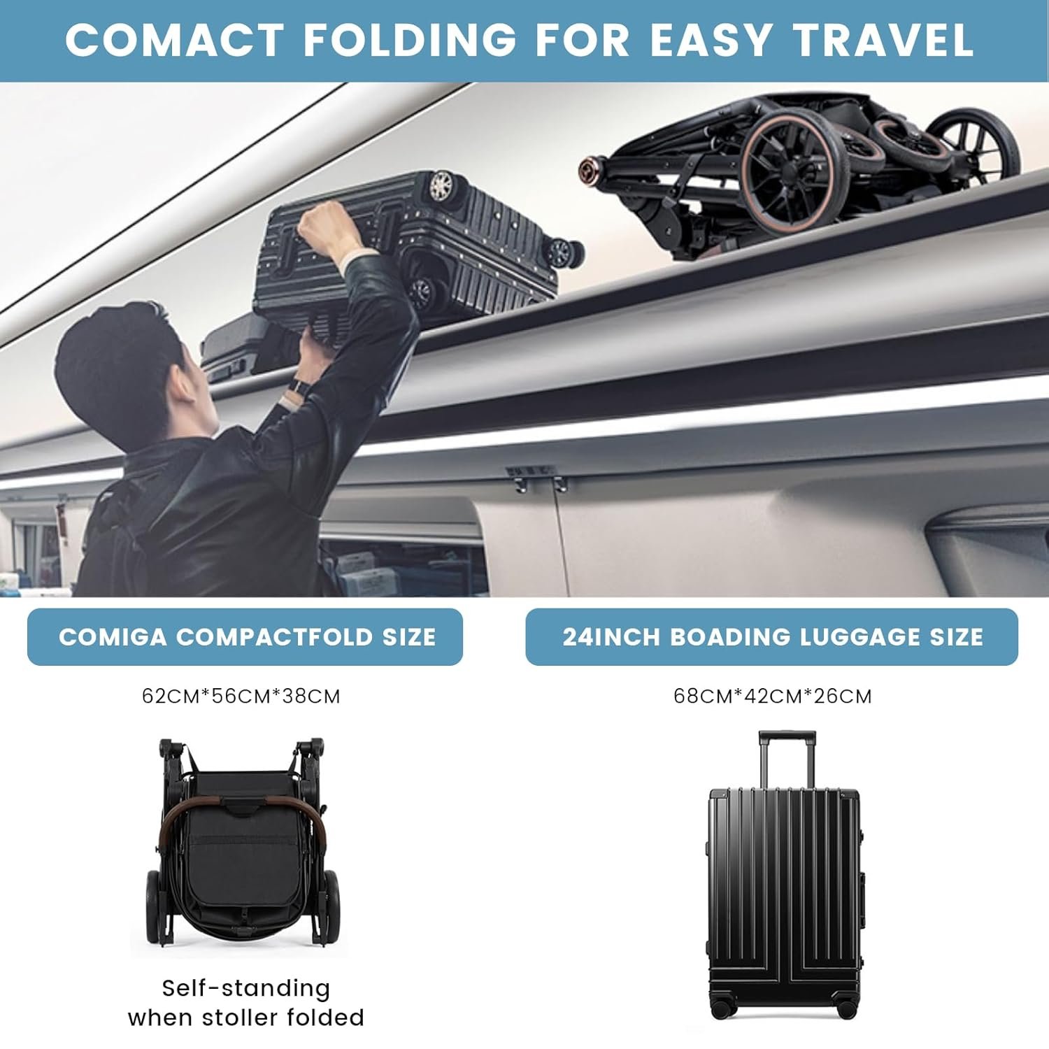 【One-Hand Fold】The Stroller weighs only 17 lbs (7.9KG) and the folded size is only 24″x22″x14″(62*56*38cm). You can fold the stroller in seconds with a light press and with one hand. Mama can also control and carry it easily. From the overhead cabin luggage of most airplanes to the trunk of a city car, this compact folding stroller can travel with you anywhere and makes traveling with your baby effortless as well as flight-friendly.