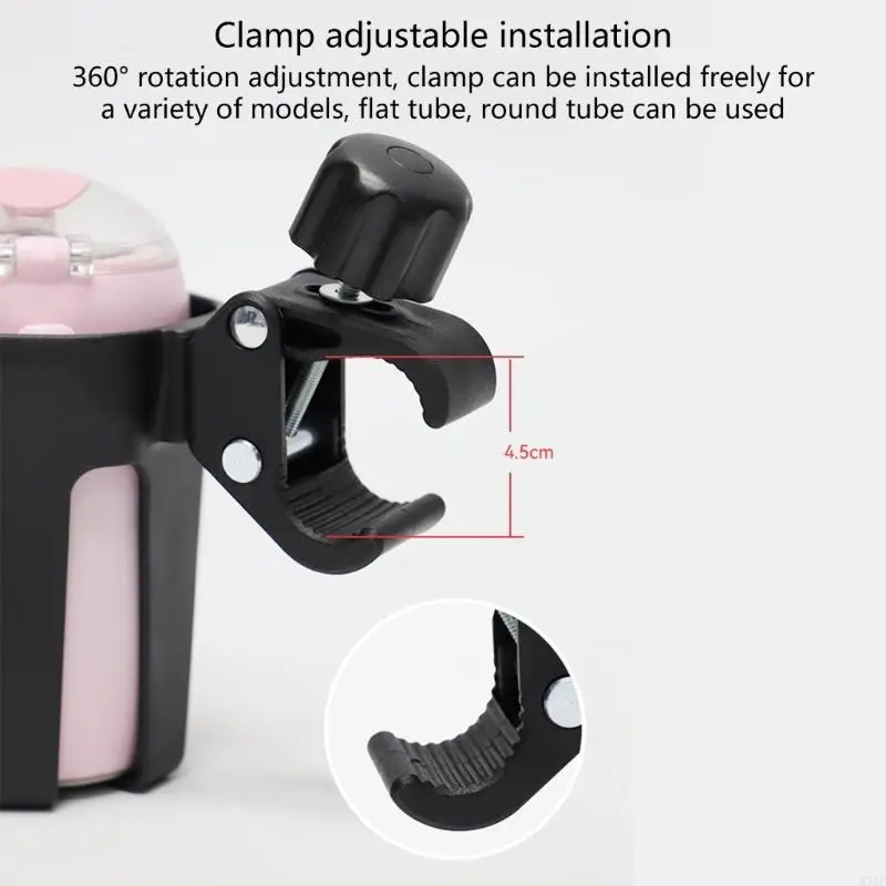 Universal mount, suitable for various handlebars, strong clamp that holds the cup in place to prevent drinks from move and spilling.
