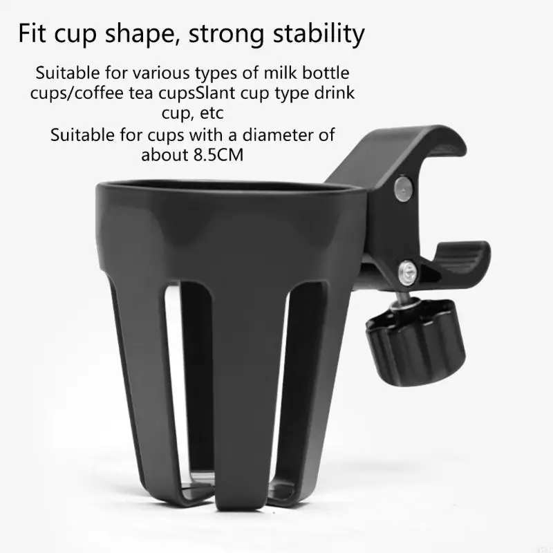 Stroller cup holder, 90 degree rotation design, suitable for most strollers, walkers, bike, motorcycles, prams and more.