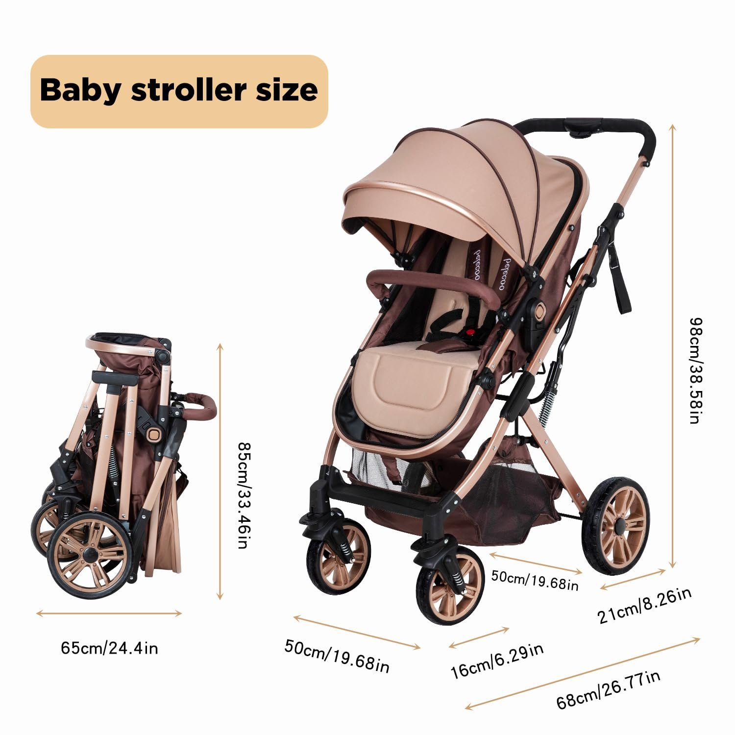 Baby Stroller Newborn Foldable Pushchair with Adjustable Canopy Folding High Landscape Infant Carriage, Anti-Shock Toddler Pushchair