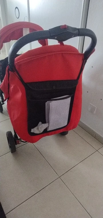 excellent quality, has two compartments, one larger and made of mesh, attached with buttons, fits any stroller handle, wide ones are also possible, there is some stock.