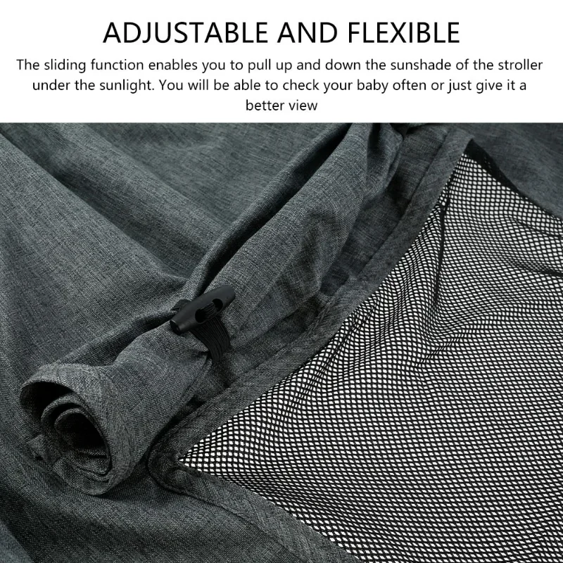 3. Adjustable and stretchable: the sliding feature enables you to pull up and down the buggy sun cover under the sun. You will be able to check your baby often or just give a better view.