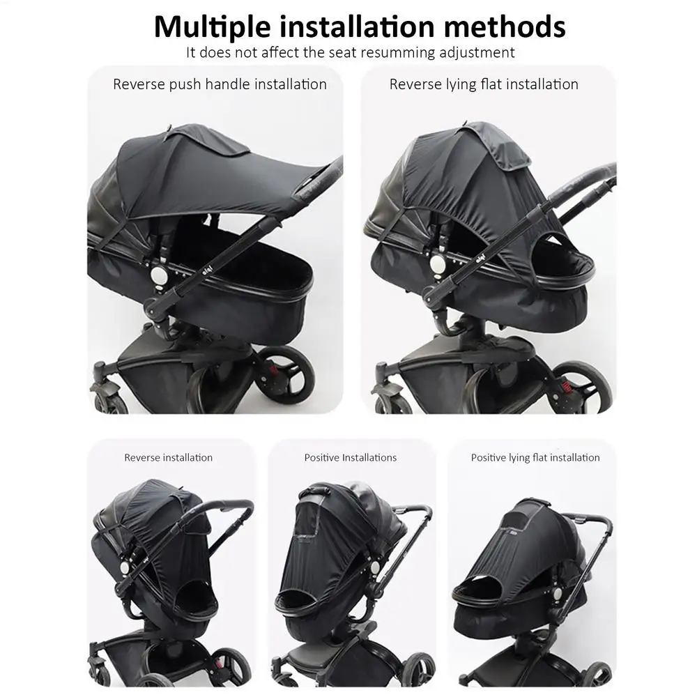1.Soft Material: Crafted from natural cotton, this sun shade blocks harmful UVA, UVB rays while offering windproof and dustproof advantages, ensuring comfort and protection during stroller use
