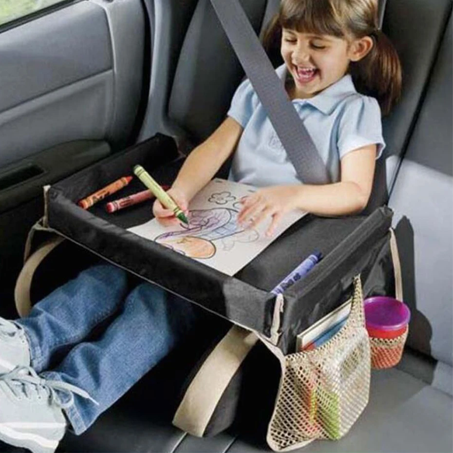 Baby Stroller Table Toy Desk Interior Car Seat Tray for Kids Draw Eating Storage Snacks Toys Cup Holder Kids Car Travel Tray