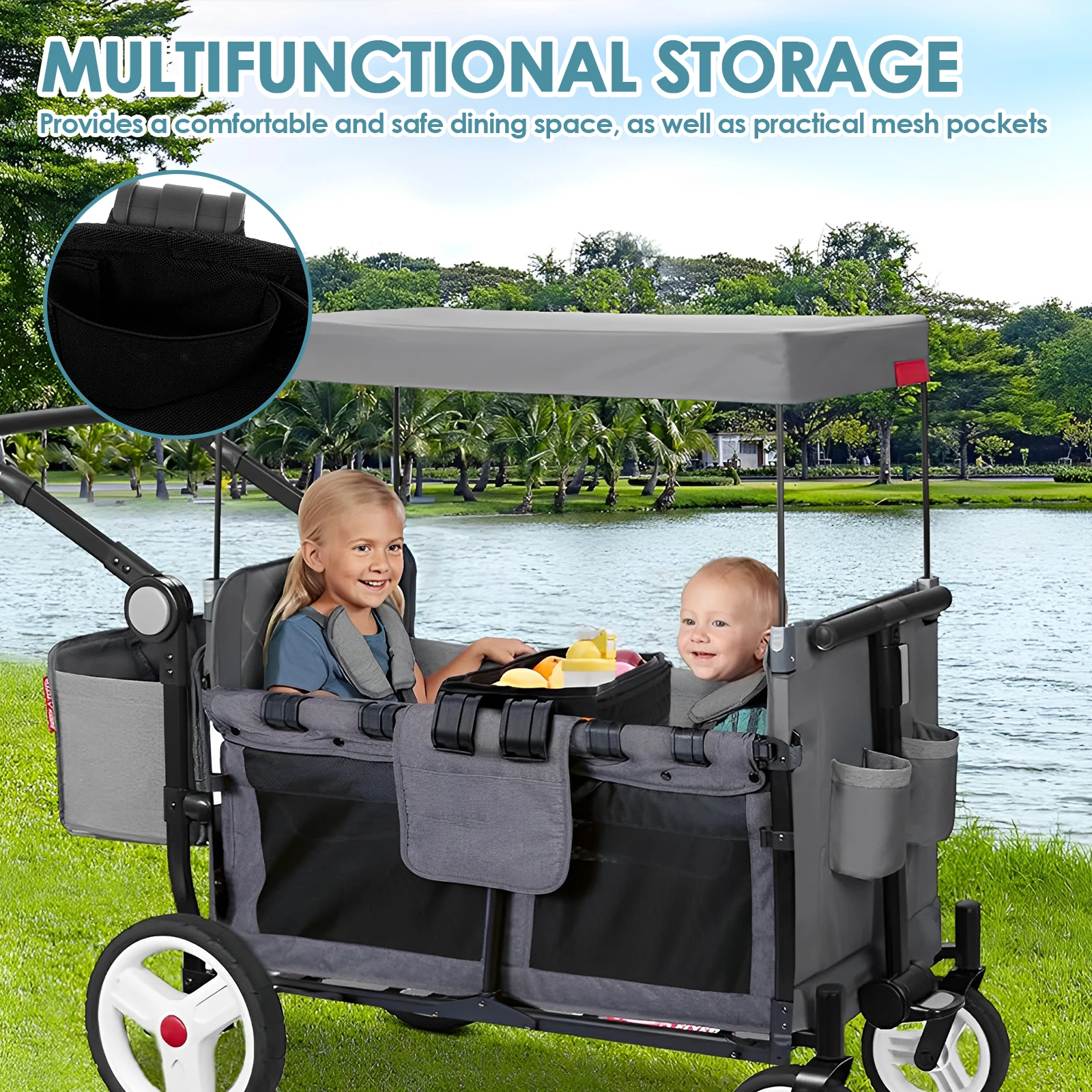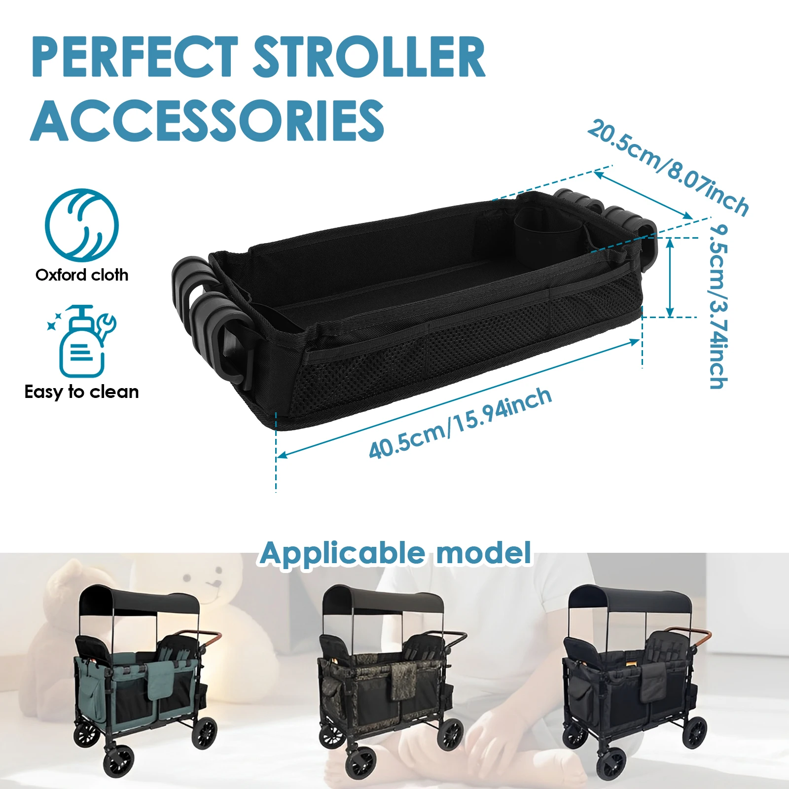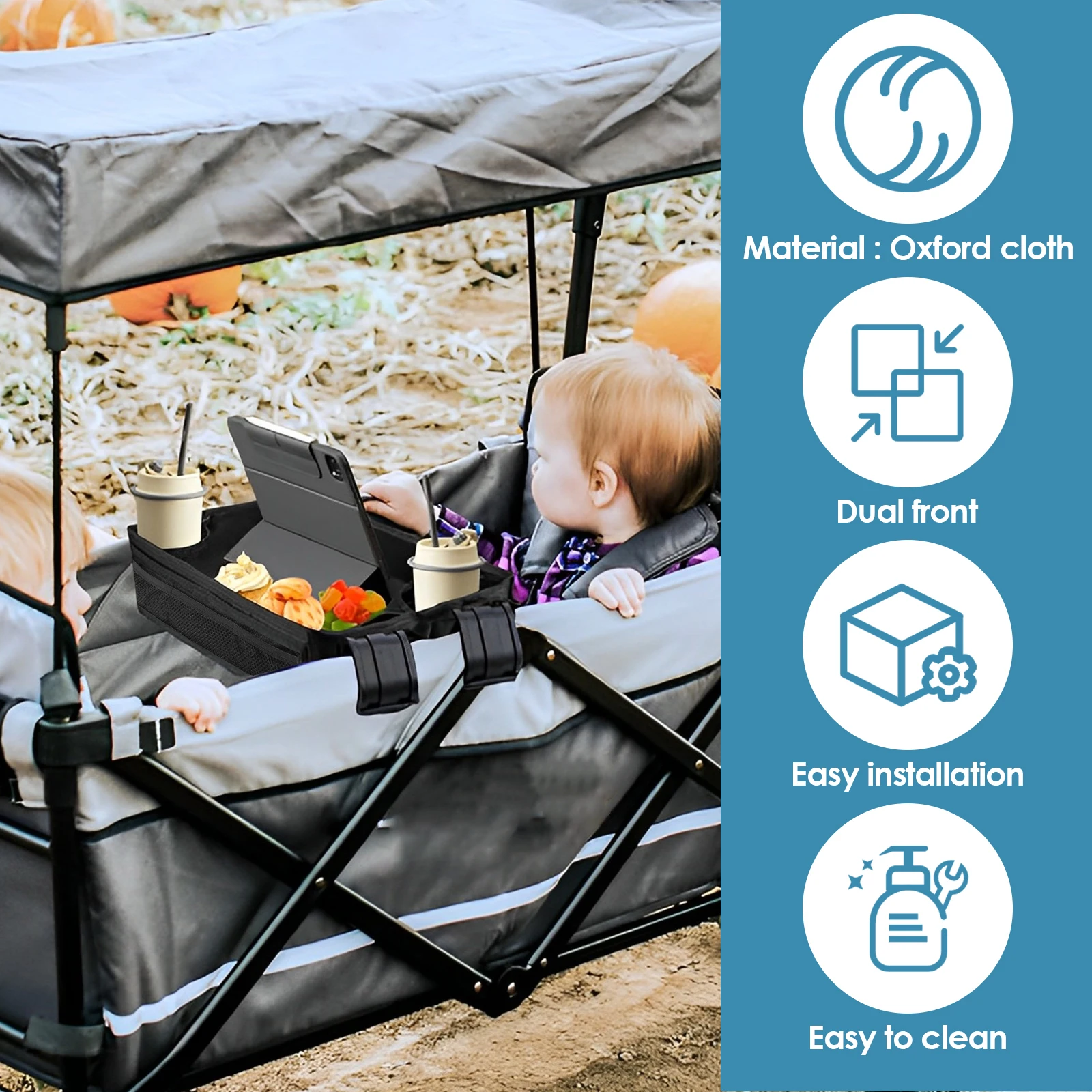 Baby Stroller Tray with Cup Holders W2 Double Sided Stroller Tray with Storage Mesh Pockets Detachable Outdoor Accessories