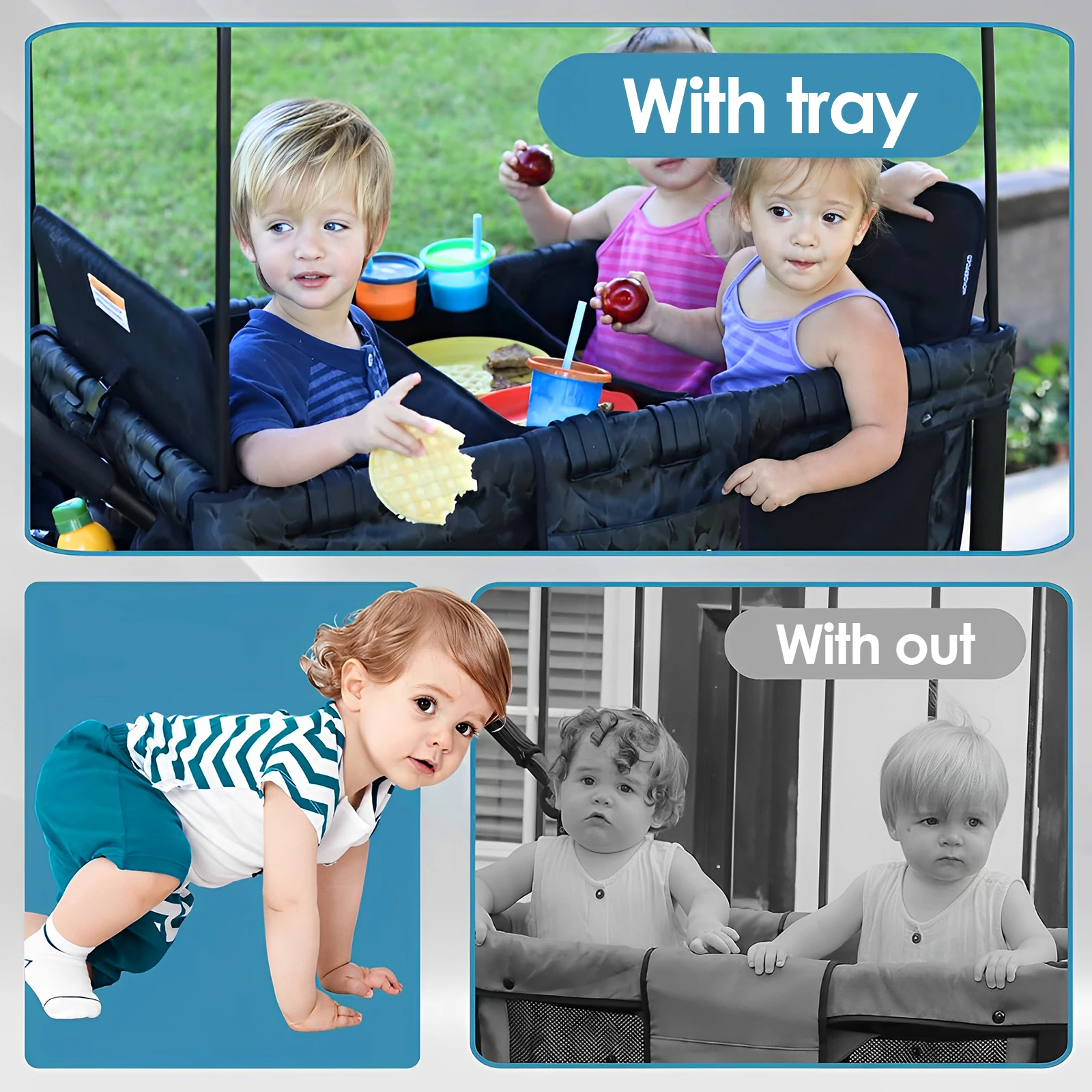 Snack Tray with Cup Holder: The reinforced bottom tray and cup holder offer a safe and reliable place for children’s snacks and beverages. Babies can enjoy their treats during the journey, making your outings more relaxing and enjoyable