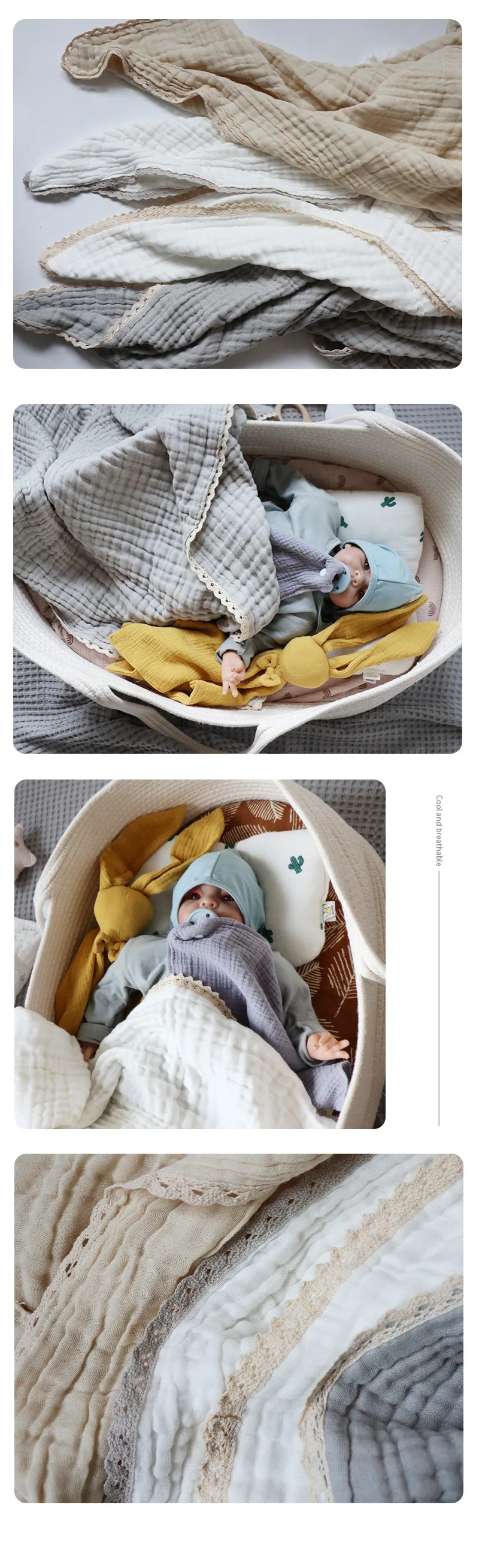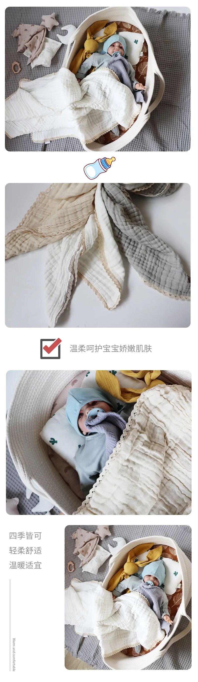 Baby Swaddle Blanket Cotton Bath Towel Six Layers Gauze Lace Swaddle Wrap for Newborn Blanket Baby Items Stroller Cover
