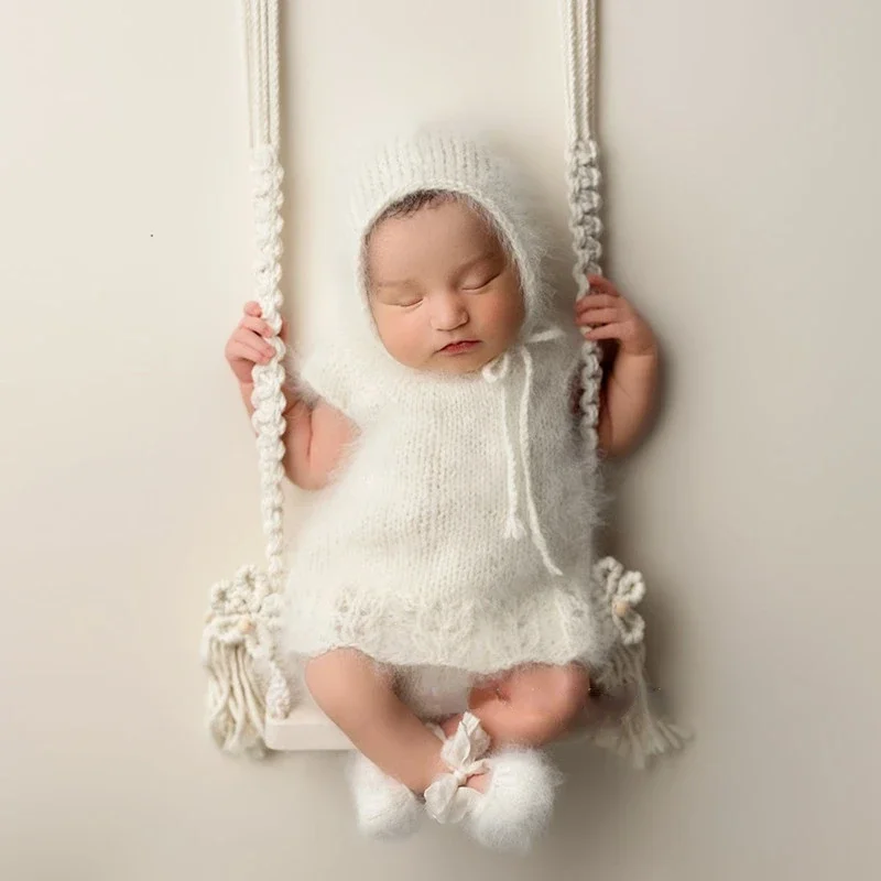 Baby Swing New Born Photography Props Wooden Chair Babies Posing Aid Furniture Infants Photo Shooting Accessories