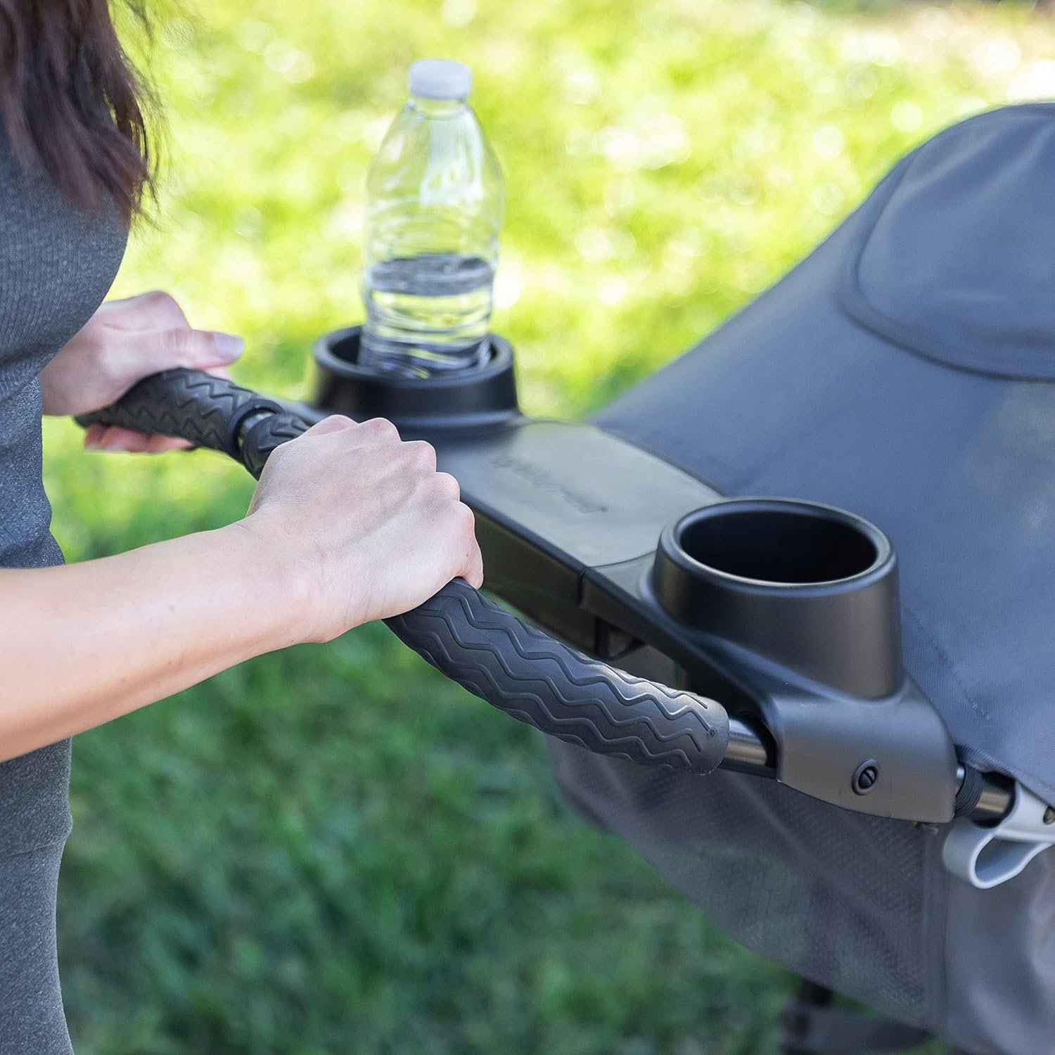 Child’s tray with two cup holders also accept an infant car seat to create a Travel System