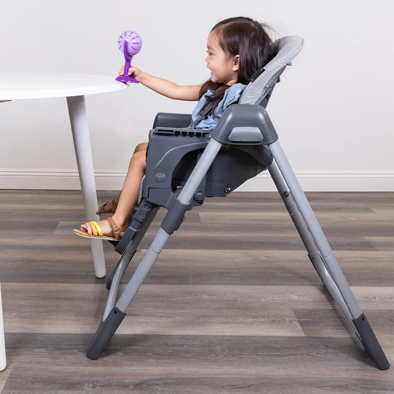 This Baby Trend® Sit Right 2.0 High Chair provides the optimal combination of style, safety, ease-of-use and convenience for your little one. Your baby will be safe and comfortable during mealtime with this sturdy and feature-packed high chair. The Sit-Right 2.0 height adjustable high chair is easy to clean and the serving tray is dishwasher-safe, plus it offers three positions and one-hand operation. The 3-point safety harness, 3-position seat recline and 6 different height adjustments provide maximum comfort and security for your baby. The high chair is easy to assemble and the compact free-standing fold makes it easy to store.