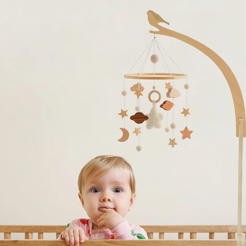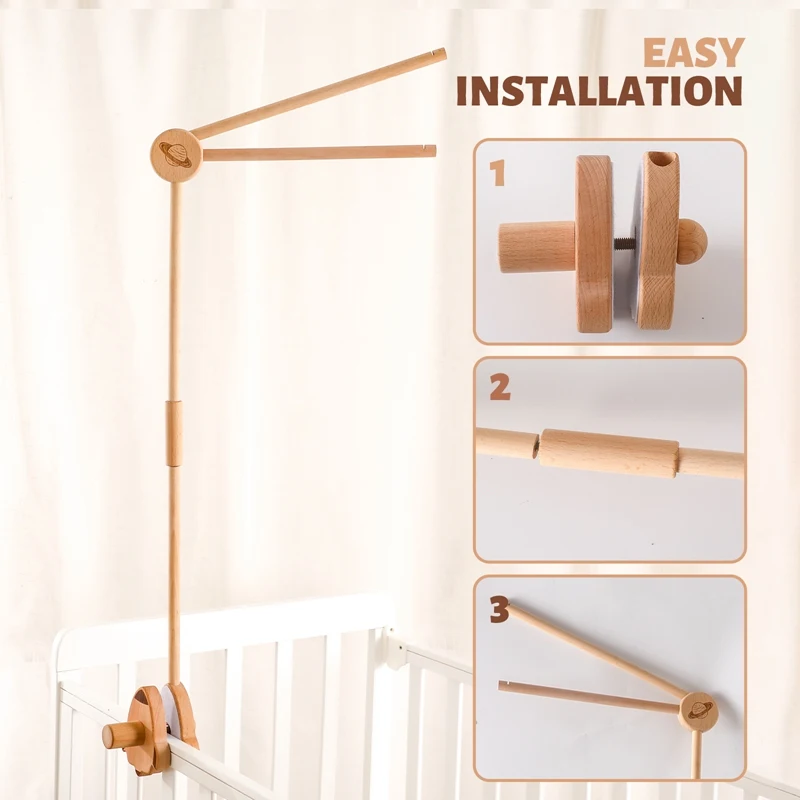 Baby Wooden Bed Bell Bracket Mobile Hanging Rattle Toys Crib Bracket Hanger Baby Crib Mobile Bed Bell Toy Holder Arm Bracket