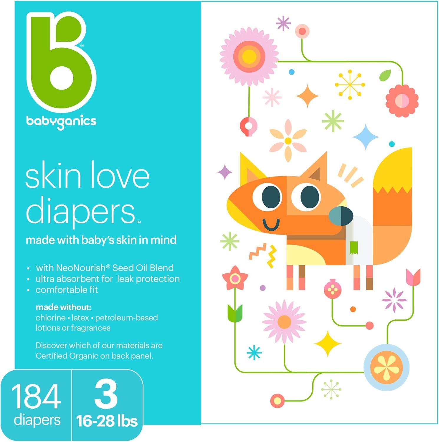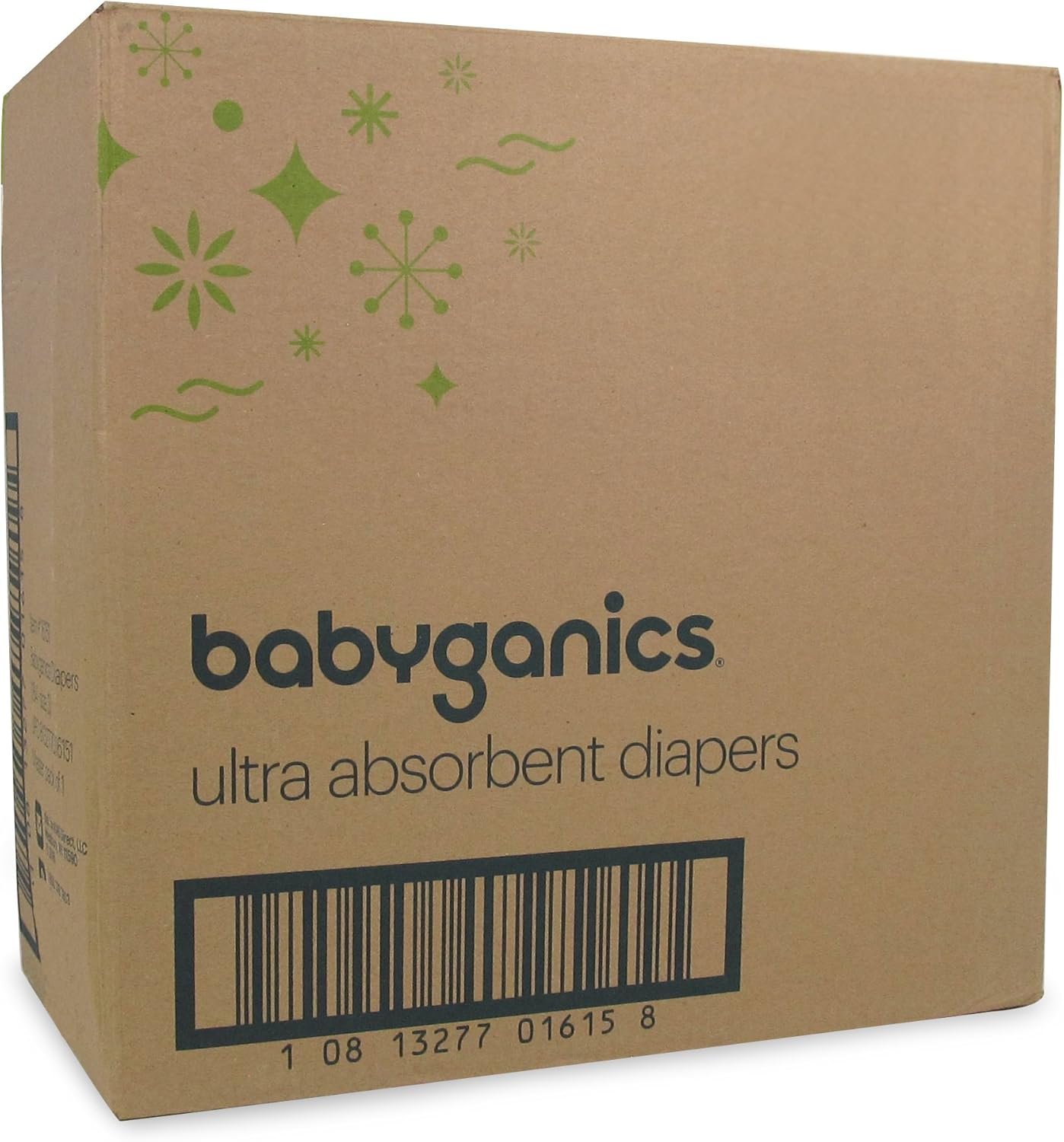 Babyganics Baby Diapers, Size 3 (16-28 lbs) 184 Count- Ultra Absorbent, Unscented, Made without Chlorine, Latex