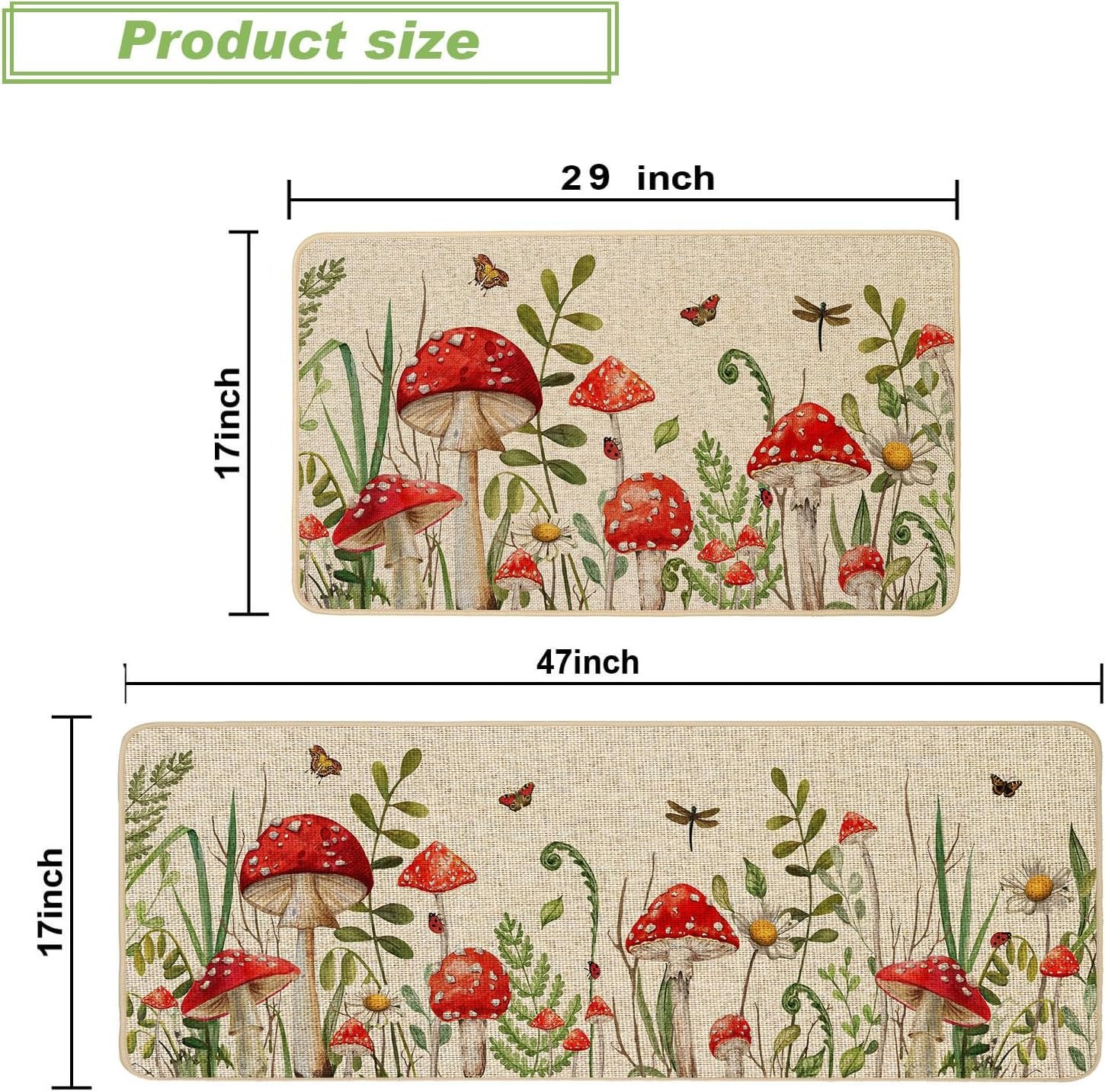 Absorbent and Non Slip: The kitchen rugs with absorbent and stain-resistant properties, protect your kitchen floor from spills and messes. Kitchen mats with non-slip rubber backing keeps them in place