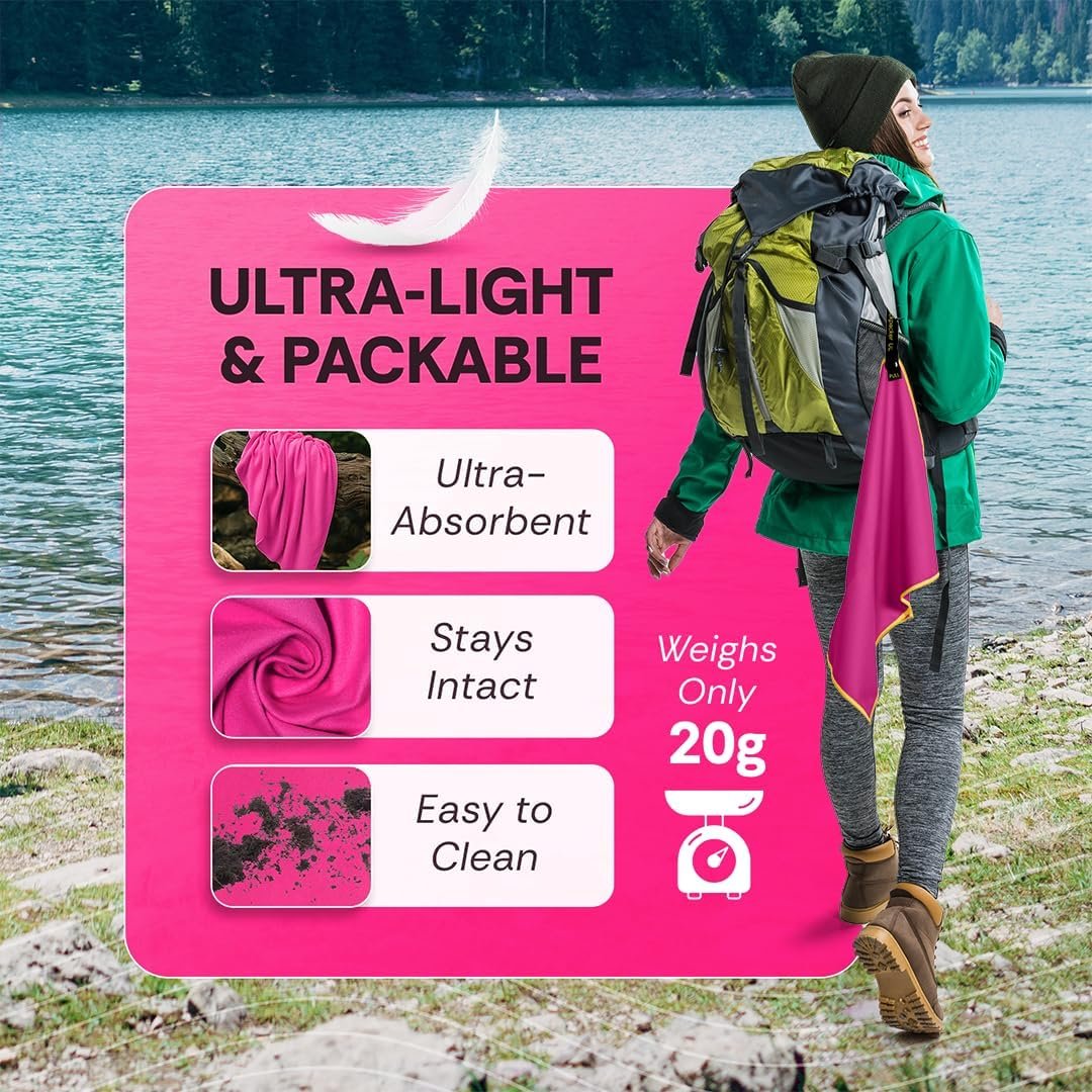 Lightweight – Weighing only 20 grams, this towel is ultra-light and perfect for travel, backpacking and outdoor adventures.
